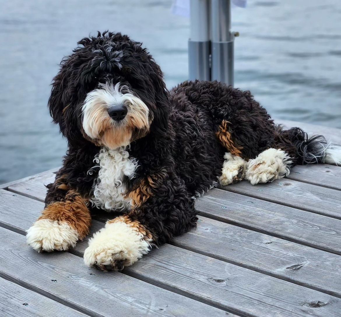 Featured below are classic tri-colored F1b bernedoodles from Kimberlee's Kennels!