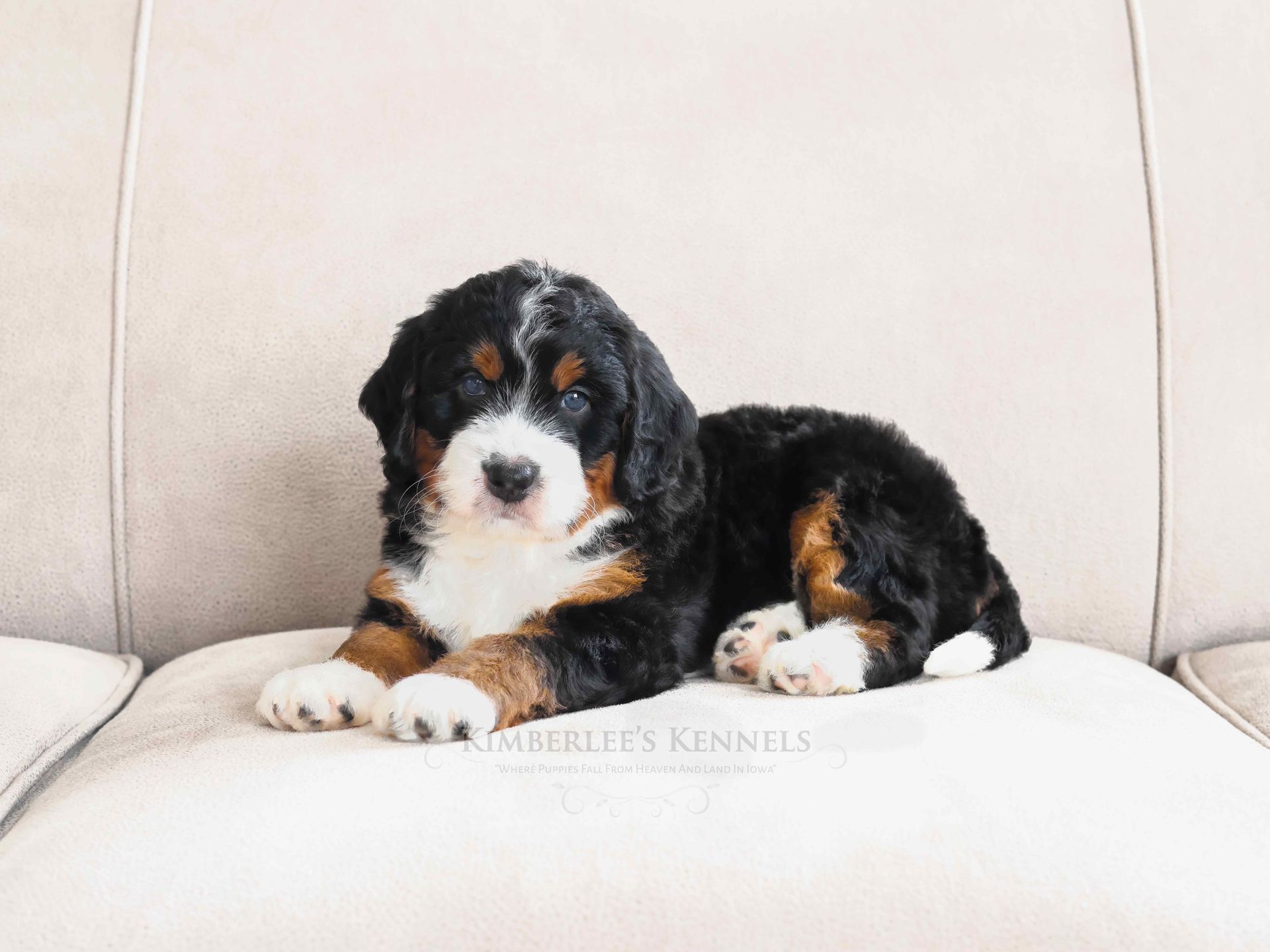 Featured below are partial tri-colored F1 bernedoodles from Kimberlee's Kennels!