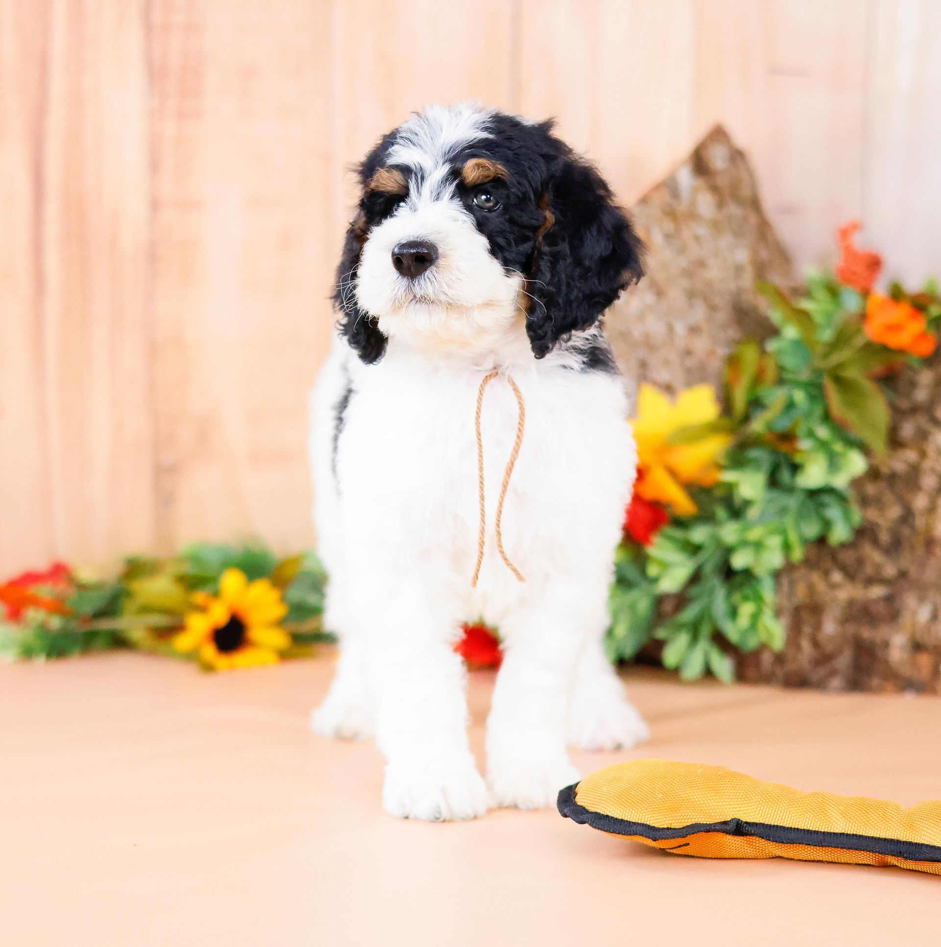 Featured below are tri-parti F1b bernedoodles from Kimberlee's Kennels!