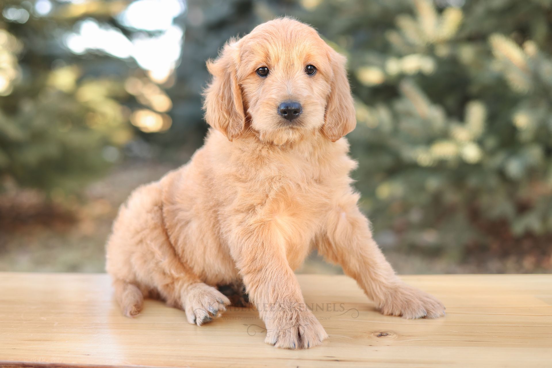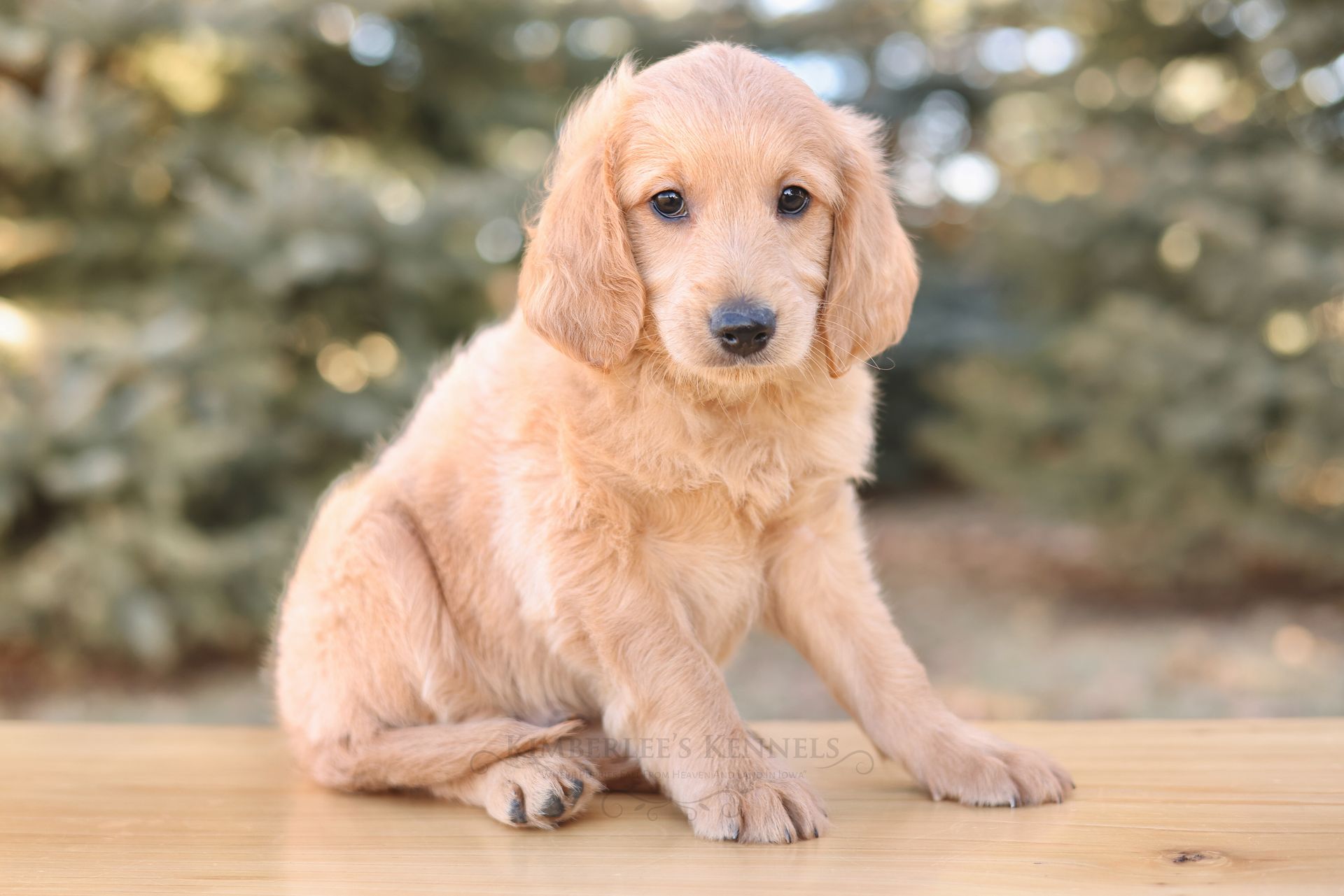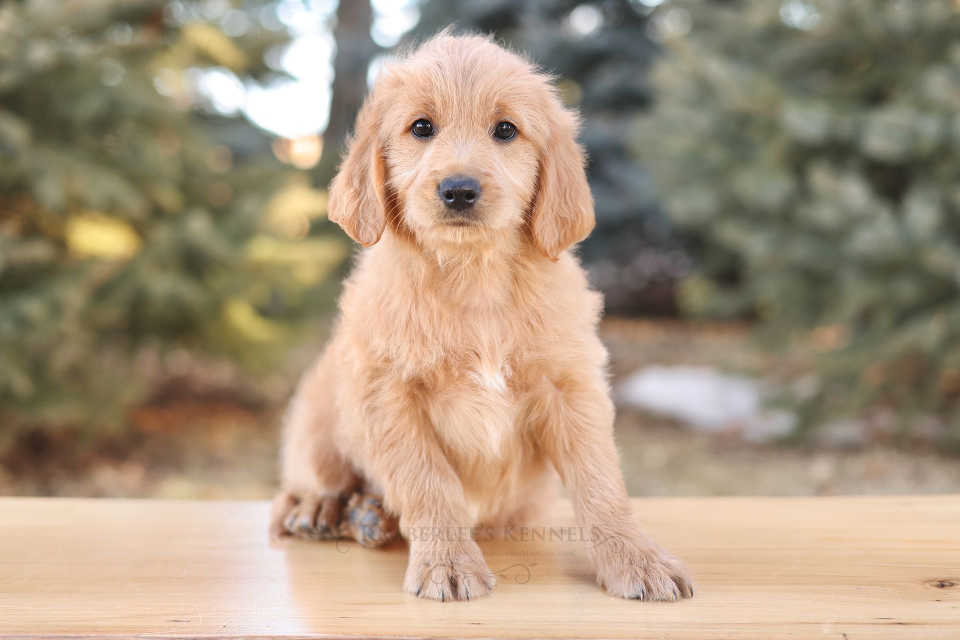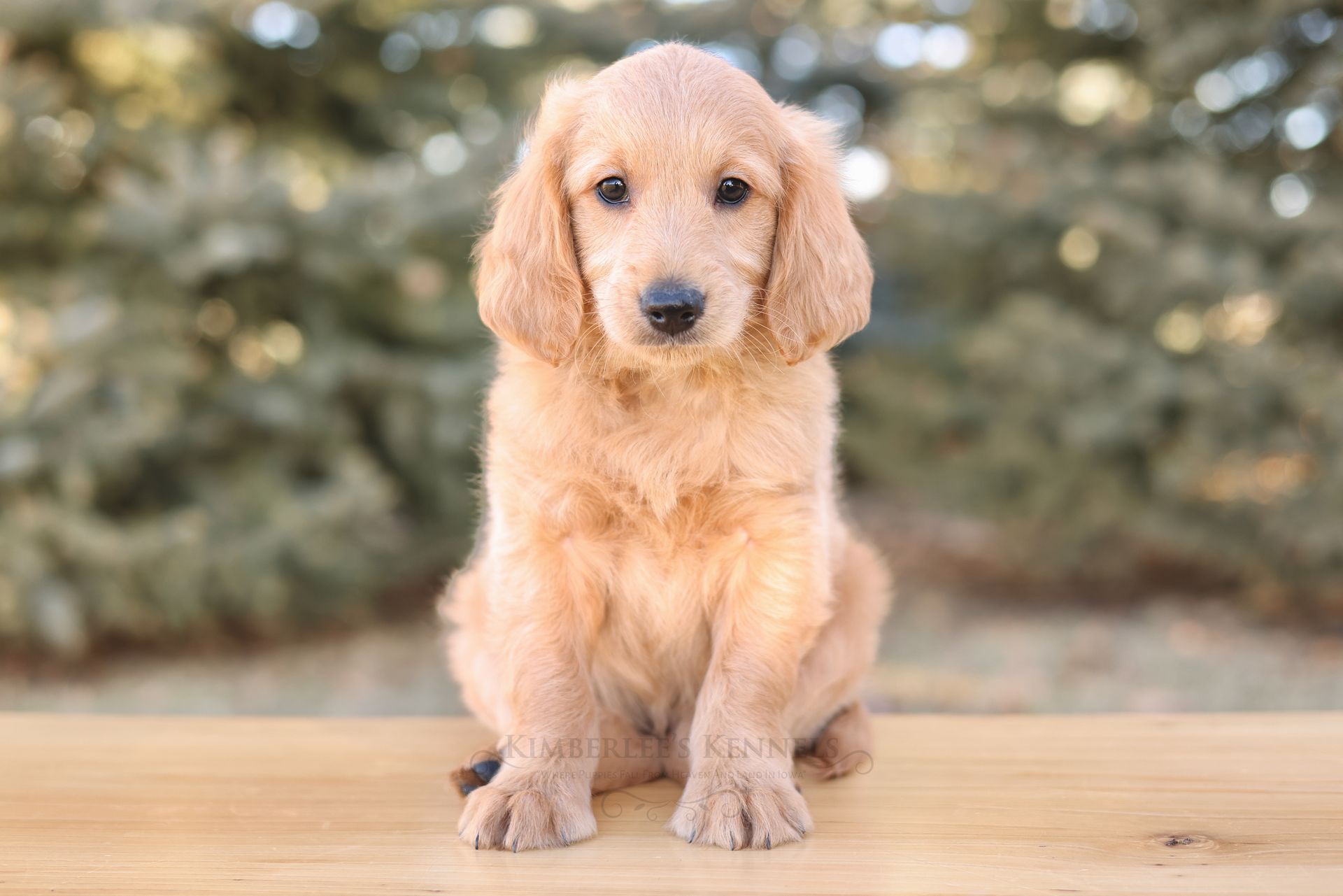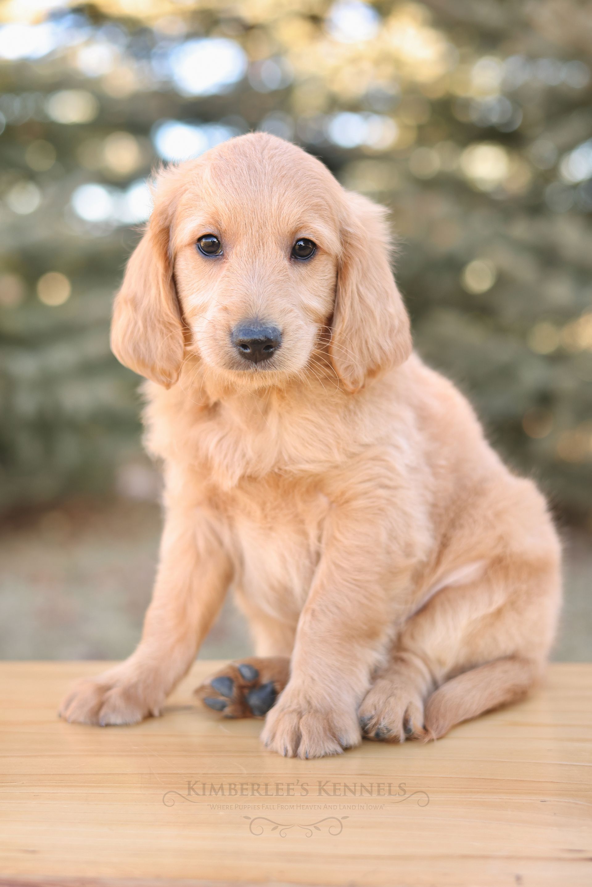 Glacier's sweet personality shines through. Glacier is the type of puppy that truly feels like another family member as he is lovable and intuitive. He has lower energy and can only be described as the “gentle giant” of her litter. If your family is looking to prioritize temperament, Glacier would be a lovely puppy to consider. He is people oriented and scores high in intelligence. Glacier is a real life teddy bear with his extra blocky build. He features a shorter snout paired with long floppy ears. His coat is a light caramel color with a silky soft wave. Glacier is one remarkable pup!