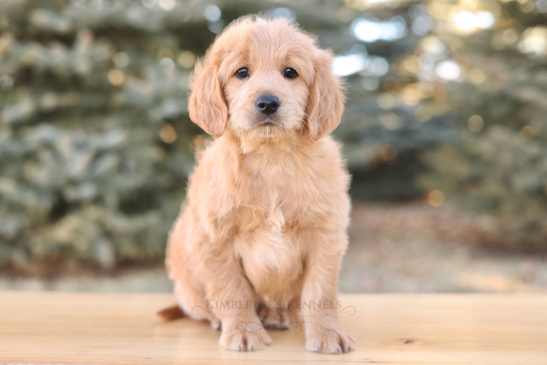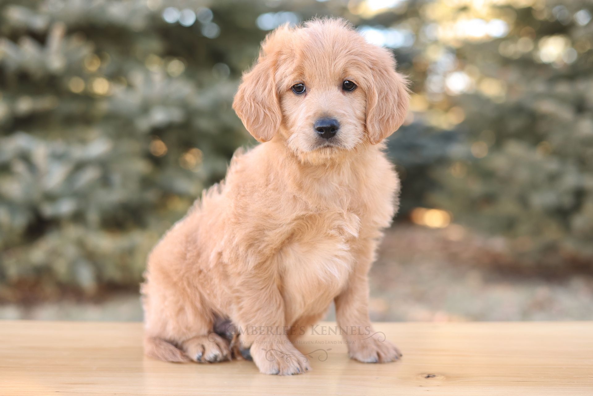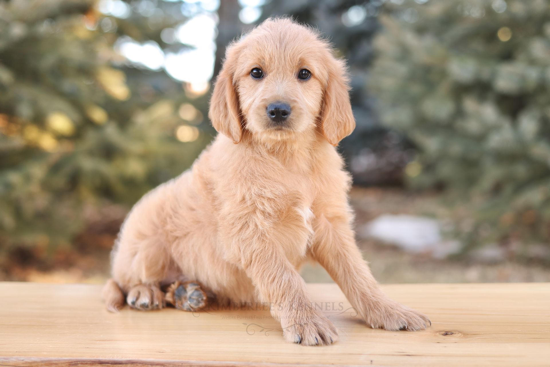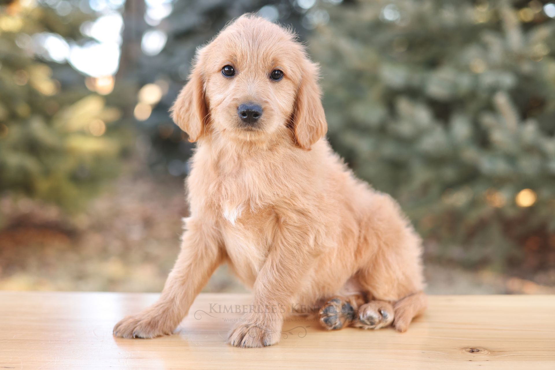 Glacier's sweet personality shines through. Glacier is the type of puppy that truly feels like another family member as he is lovable and intuitive. He has lower energy and can only be described as the “gentle giant” of her litter. If your family is looking to prioritize temperament, Glacier would be a lovely puppy to consider. He is people oriented and scores high in intelligence. Glacier is a real life teddy bear with his extra blocky build. He features a shorter snout paired with long floppy ears. His coat is a light caramel color with a silky soft wave. Glacier is one remarkable pup!