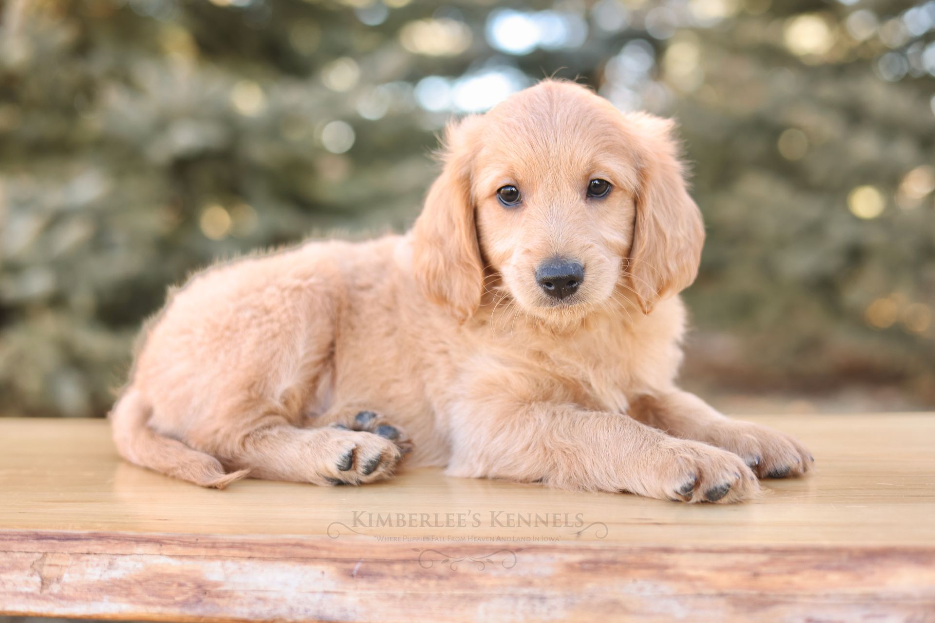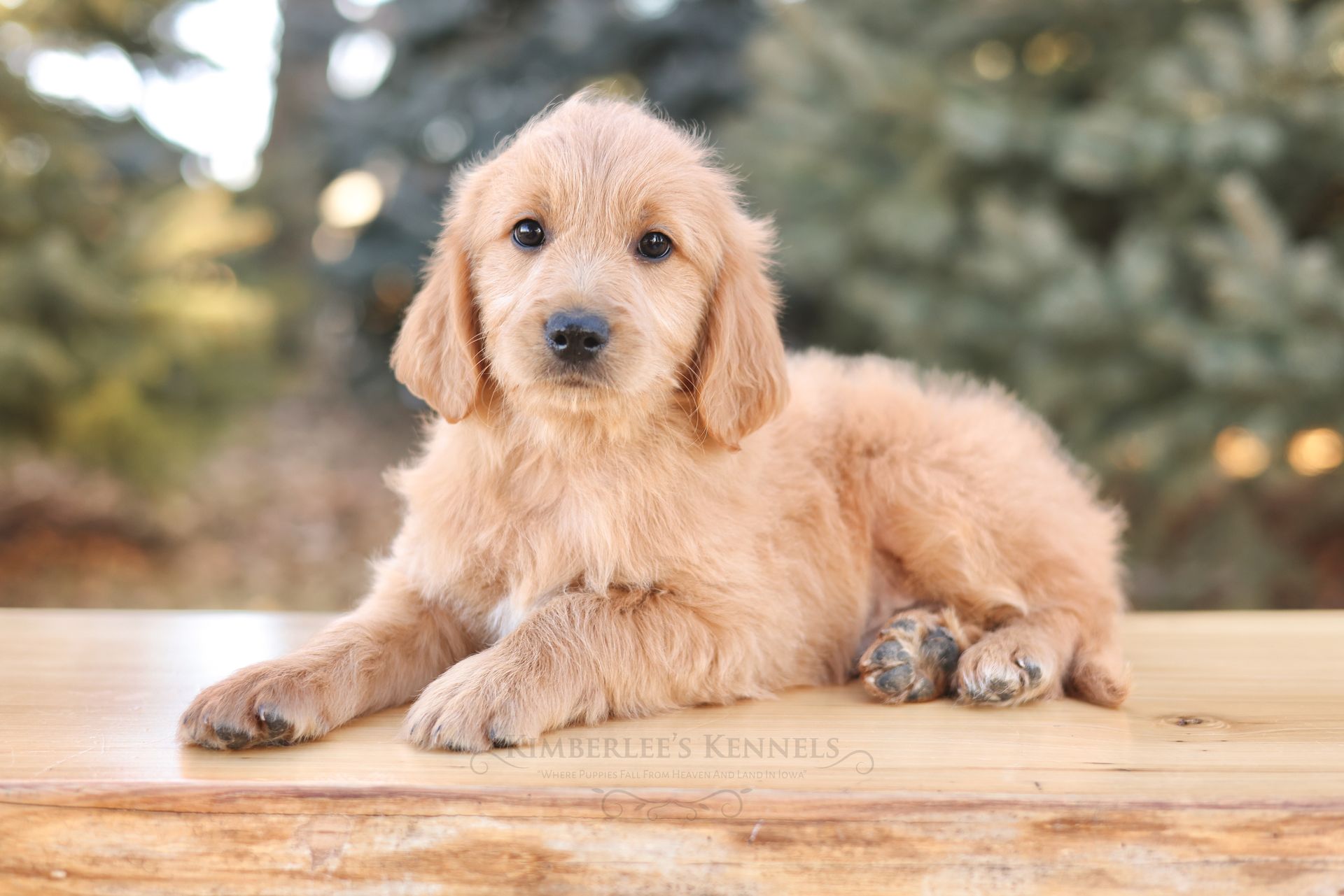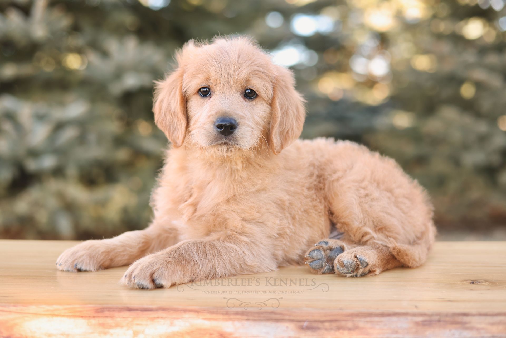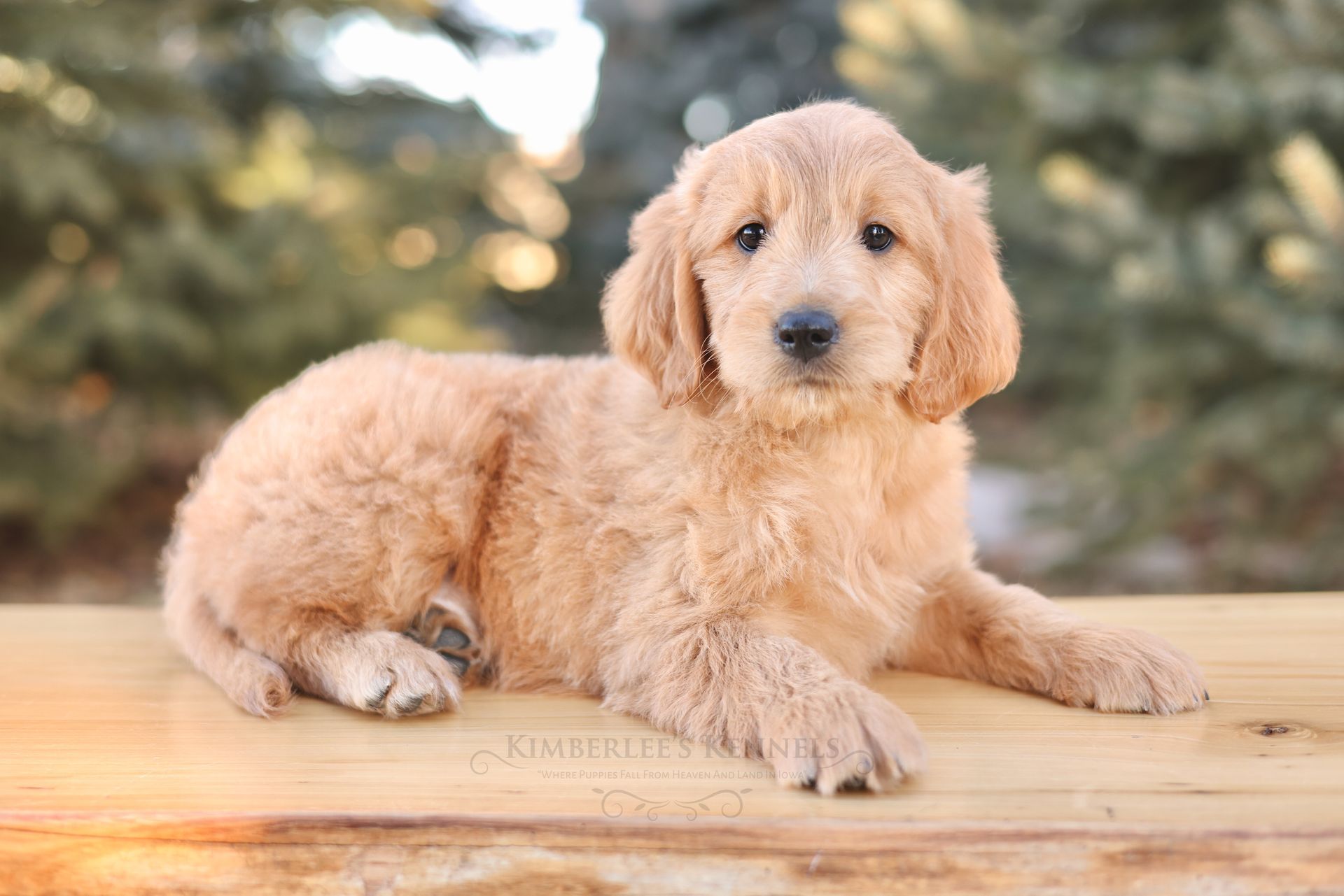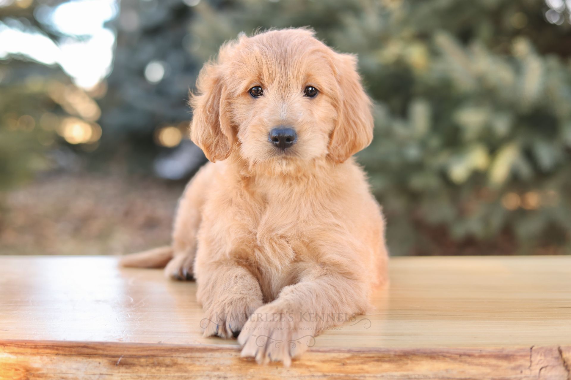 Glacier's sweet personality shines through. Glacier is the type of puppy that truly feels like another family member as he is lovable and intuitive. He has lower energy and can only be described as the “gentle giant” of her litter. If your family is looking to prioritize temperament, Glacier would be a lovely puppy to consider. He is people oriented and scores high in intelligence. Glacier is a real life teddy bear with his extra blocky build. He features a shorter snout paired with long floppy ears. His coat is a light caramel color with a silky soft wave. Glacier is one remarkable pup!