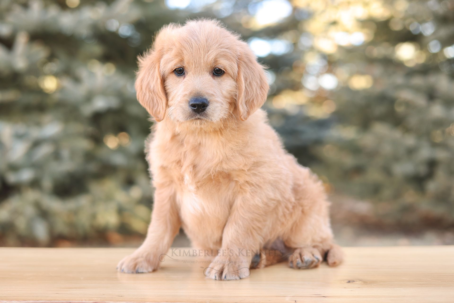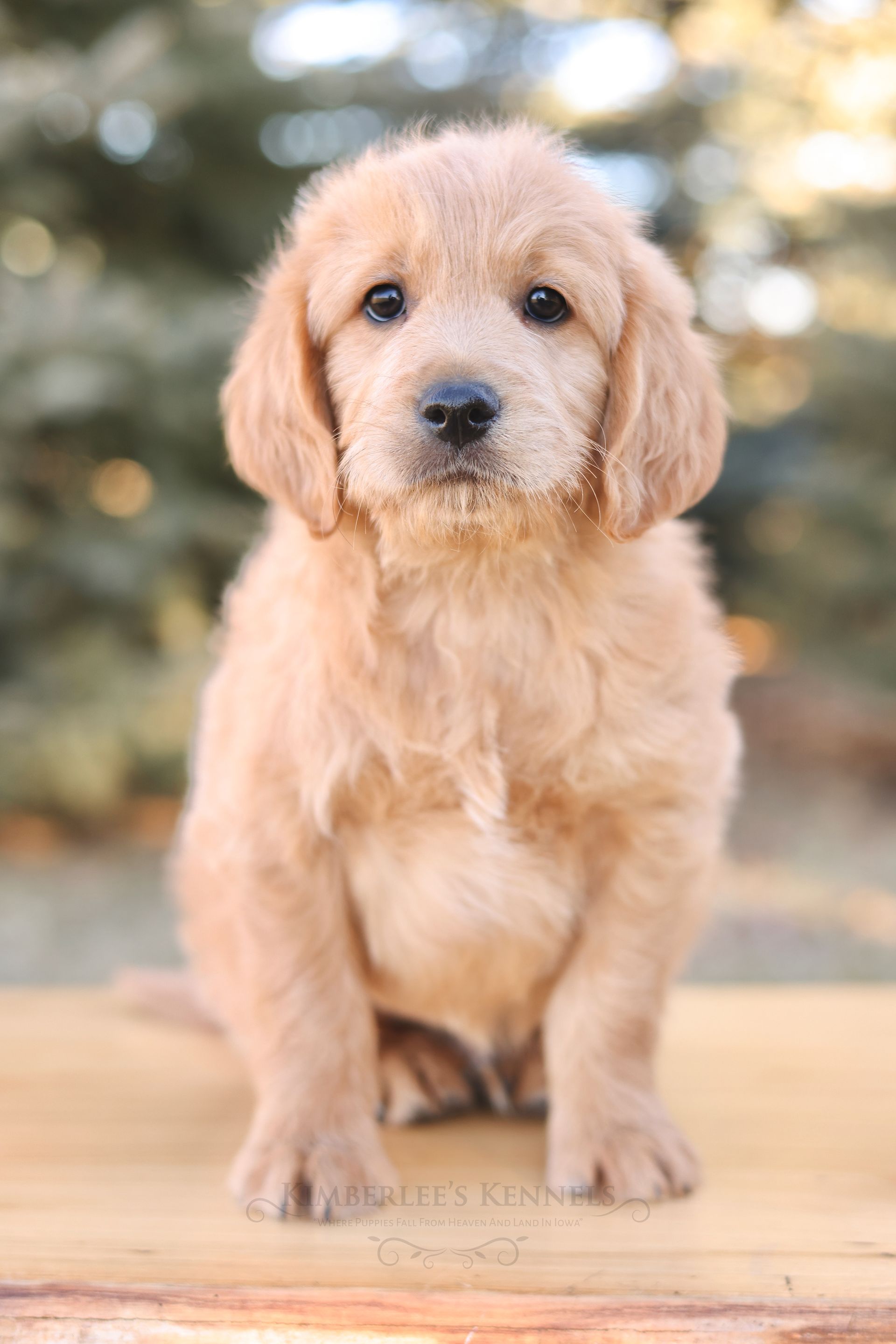 Curious Togo is highly trainable and simply a delightful puppy to be around. He scores high in intelligence and is slightly submissive. If you have children or other pets at home Togo would be a wonderful puppy to consider. He’s a content puppy with a goofy air of innocence. He has what we consider a polite temperament. When he is not romping around with Kimberlee's children he will quietly entertain himself. He has it all: an endearing personality, and an adorable teddy bear appearance. Togo's coat is velvet soft with a bouncy wave. His black button nose is a beautiful contrast to his light cream colored coat. Togo is another high quality puppy!
