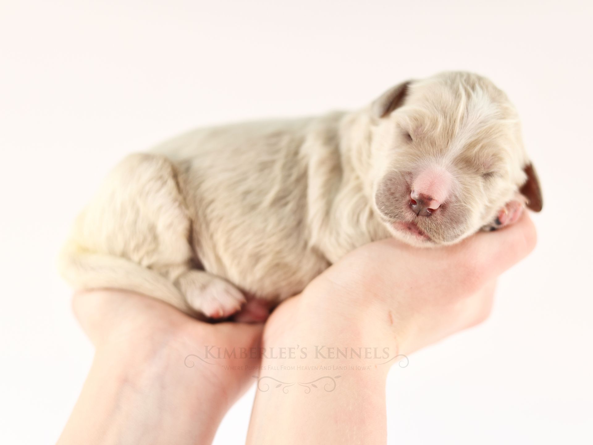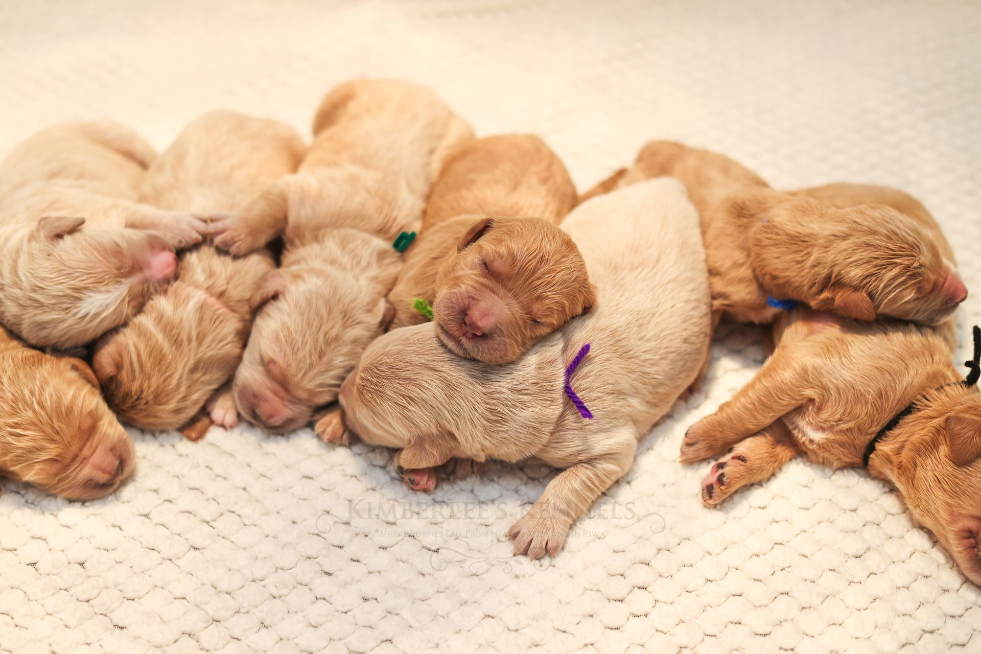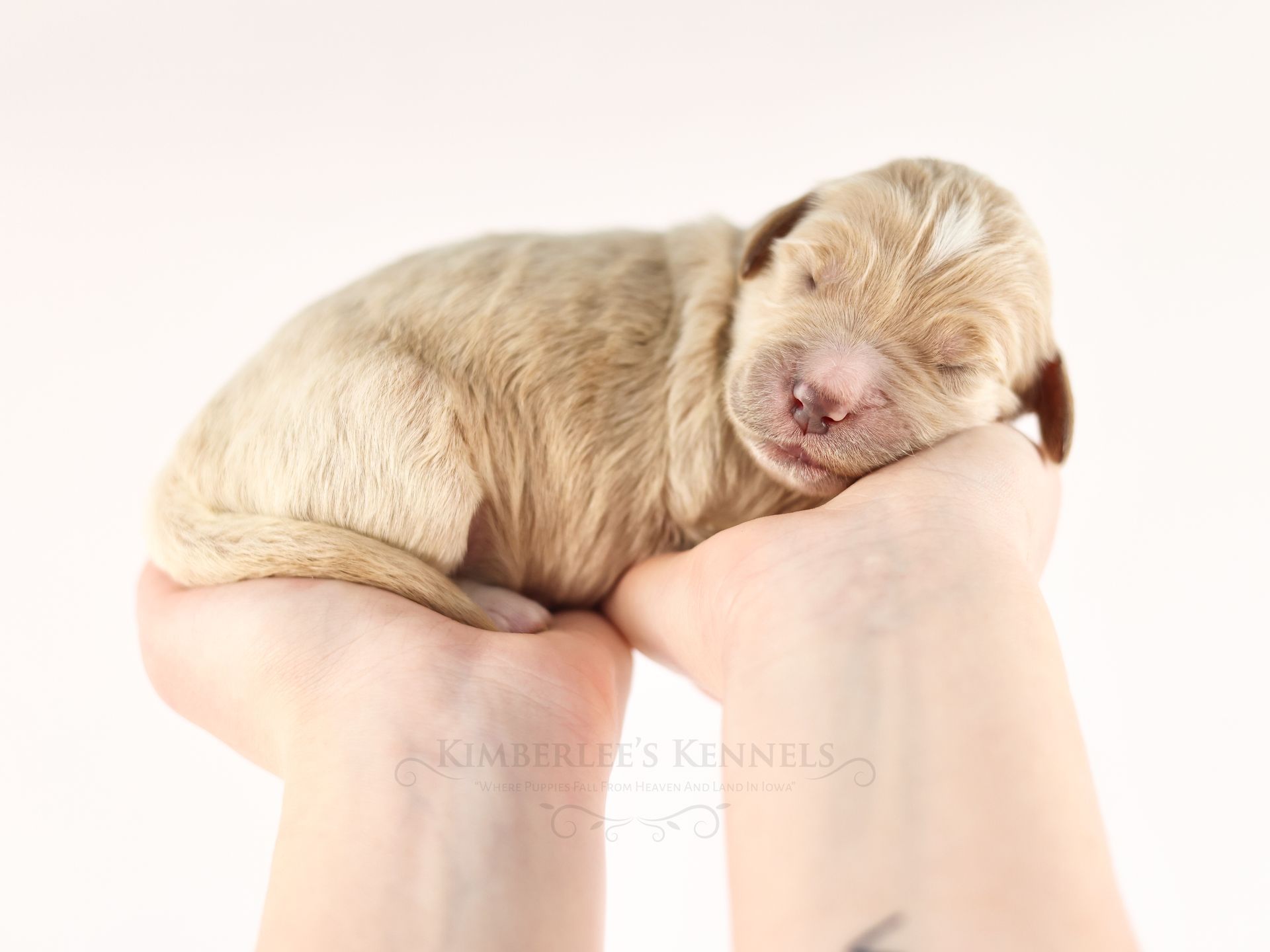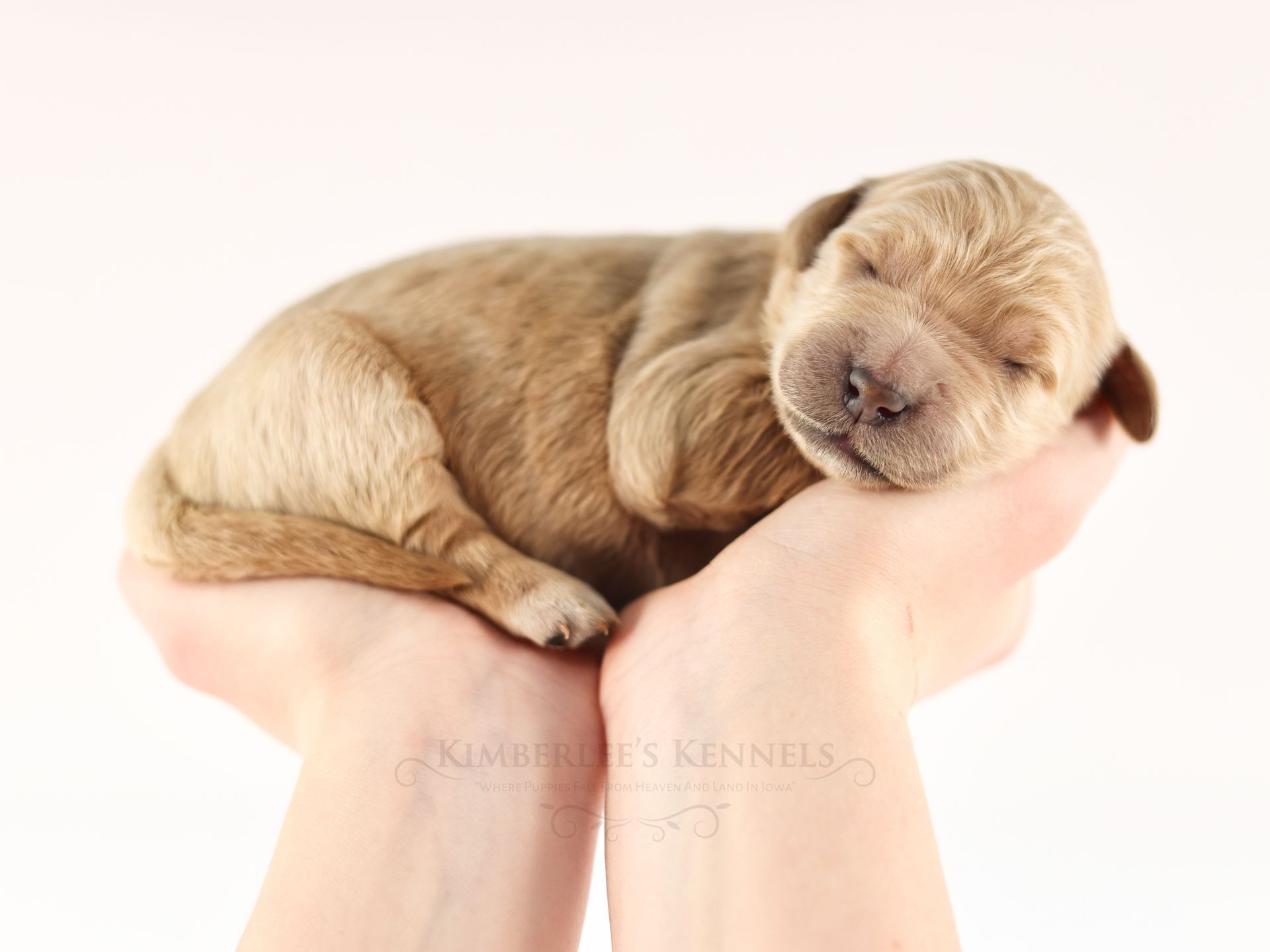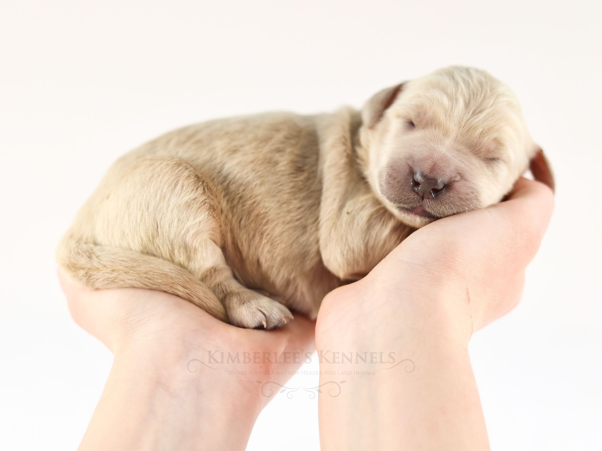 English-doodles are an excellent choice for those customers that are seeking temperament over popularity and color trends. When crossing the English-creme Golden Retriever and the poodle, we create a hybrid with the calm and polite, laid back temperament of the English creme golden retriever, yet we increase the lifespan with the poodle. English cremes have shorter legs and are not as strong in agility. To be in the presence of an English-creme golden retriever, customers are often struck with their politeness and how very calm they are. We feel the English-doodles are the finest puppies coming out of our program based on temperament alone. An excellent choice for those seeking a therapy dog, or those that may have children with special needs. Organizations like Domesti-pups have chosen our dogs for training therapy dogs. Several of our puppies have gone on to receive their Therapy Dog Certifications. we simply believe the English-doodles are one step above the others in regards to temperament and this is often very evident during bath time as they seem to lay in the water and handle the stress of the forced air blow dryer.
