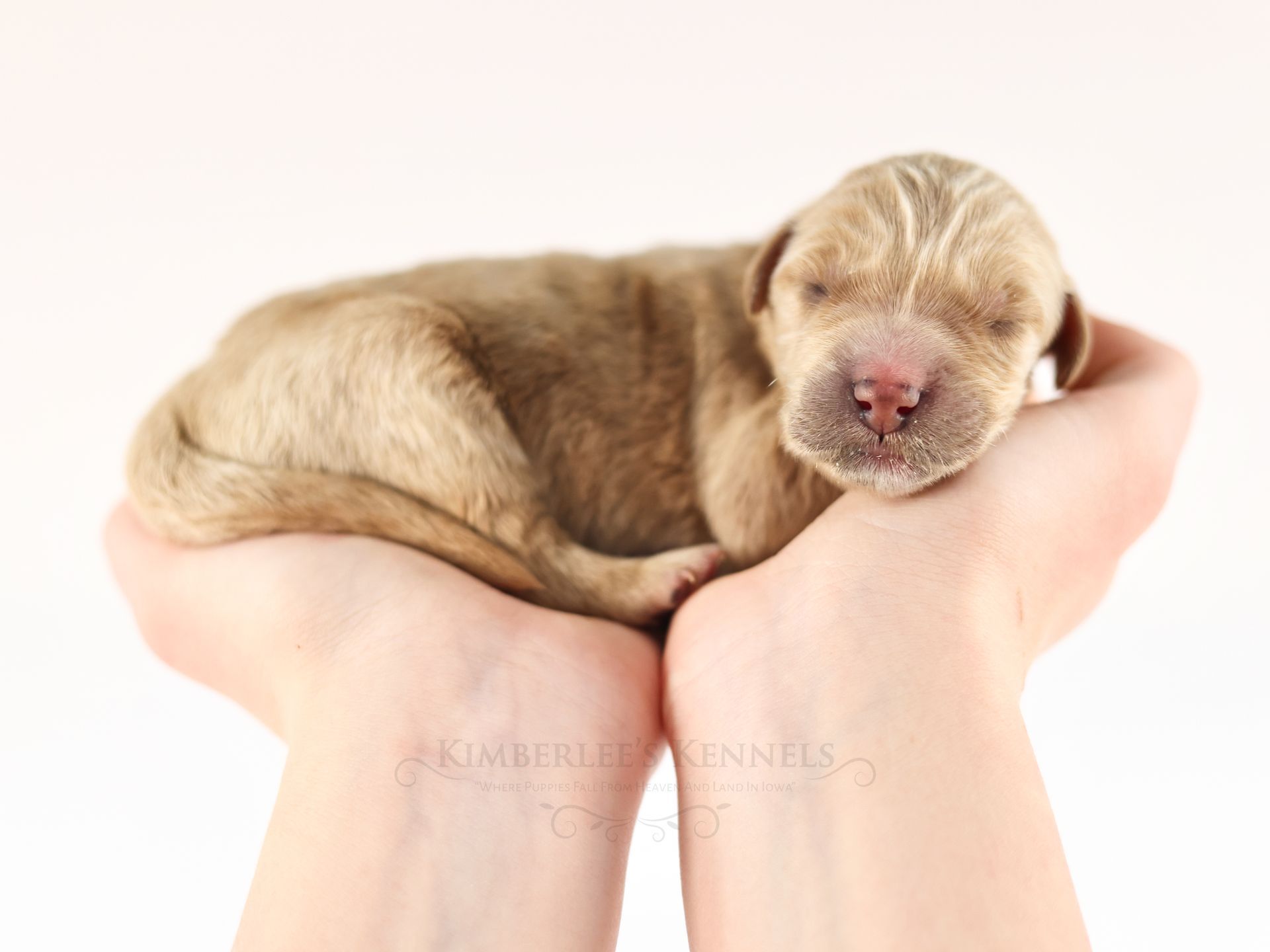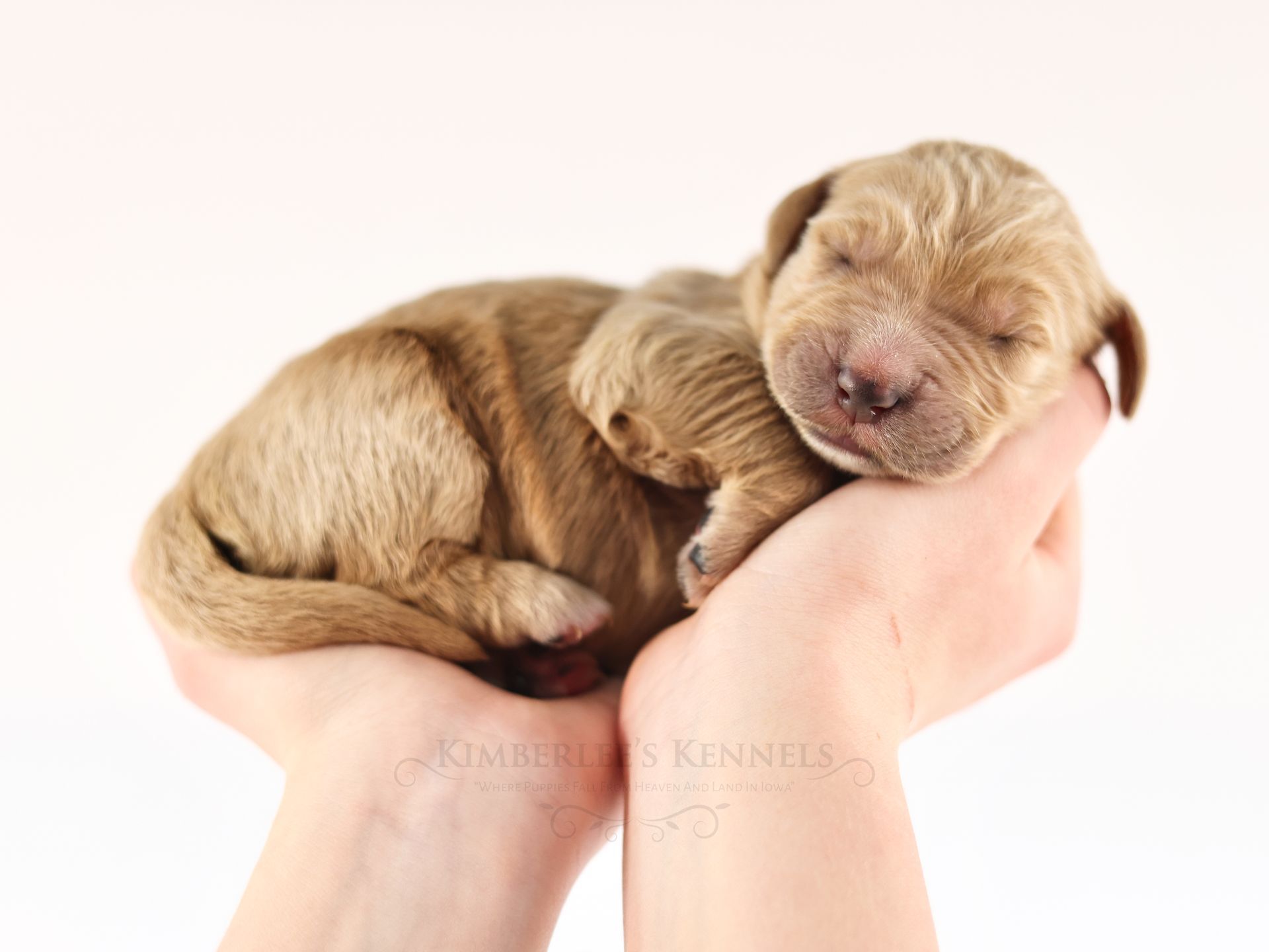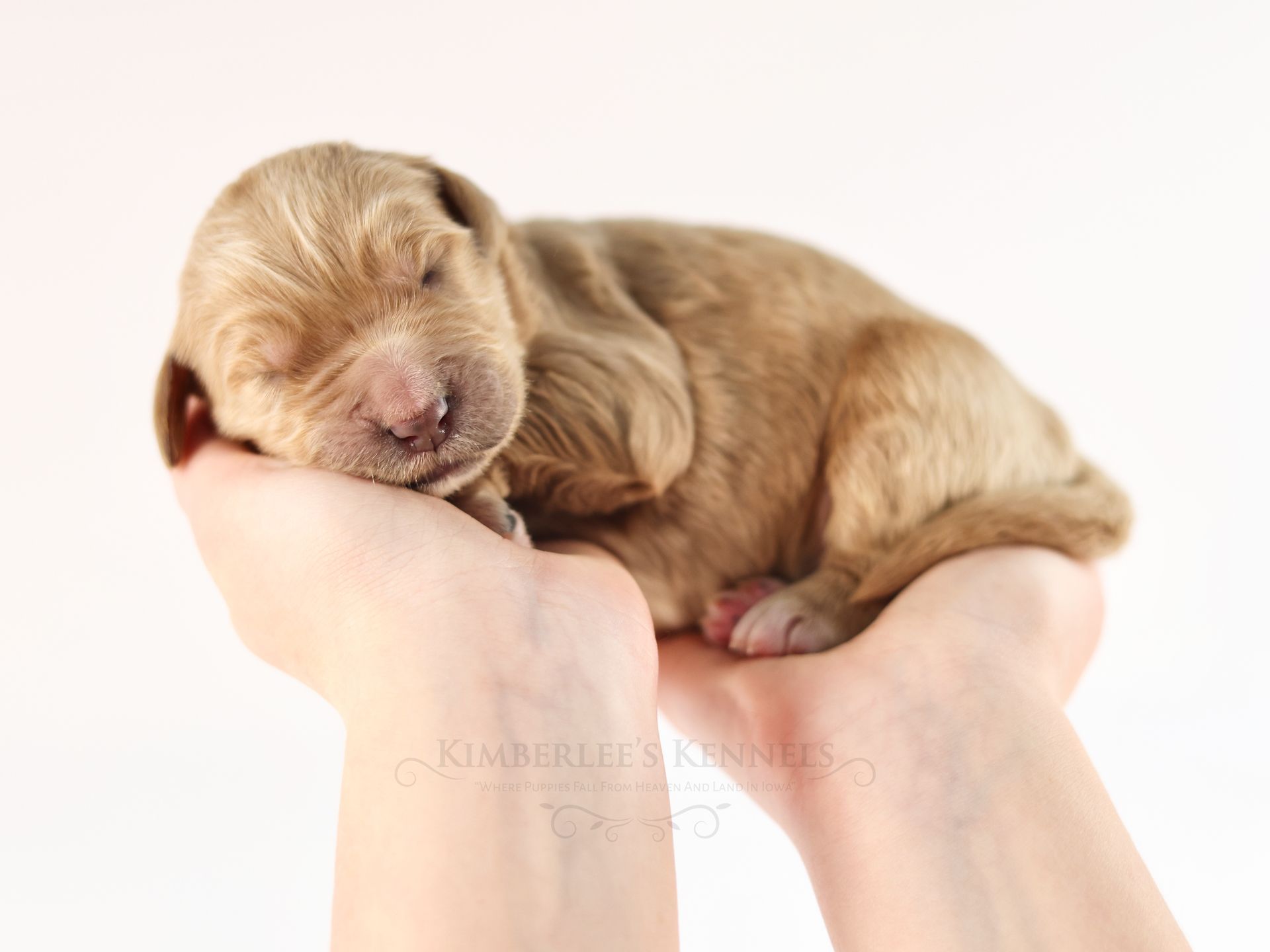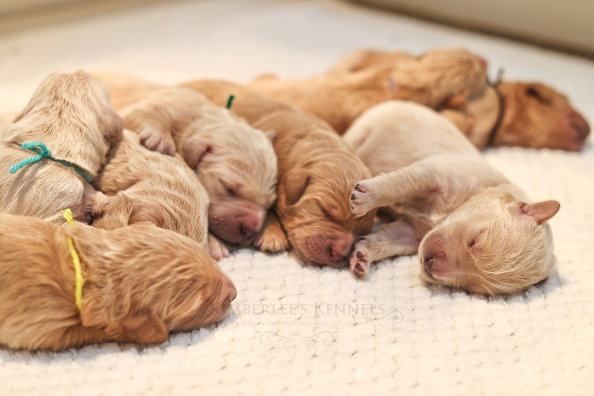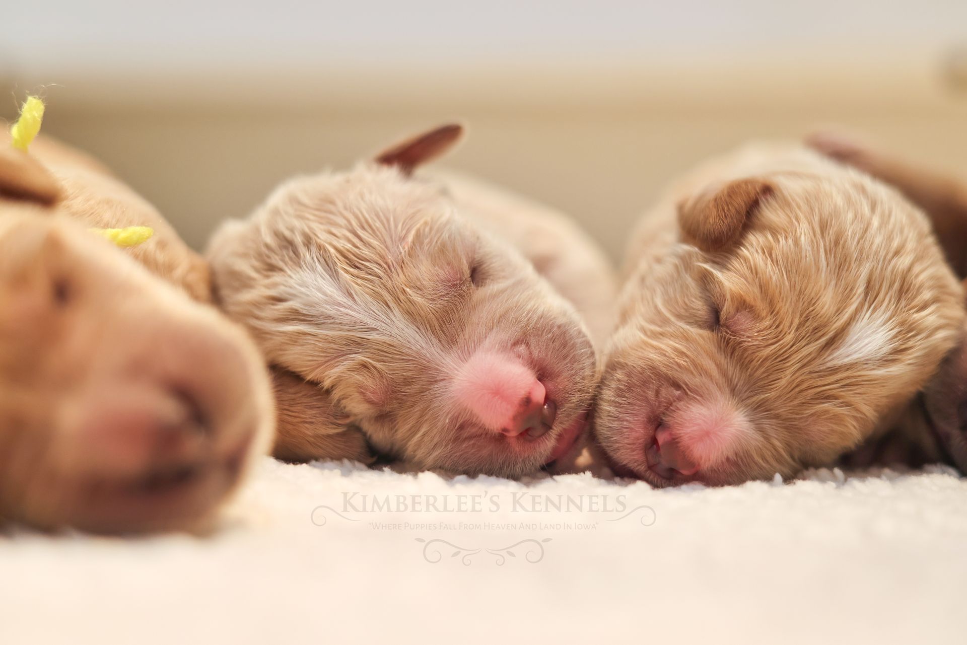 English-doodles are an excellent choice for those customers that are seeking temperament over popularity and color trends. When crossing the English-creme Golden Retriever and the poodle, we create a hybrid with the calm and polite, laid back temperament of the English creme golden retriever, yet we increase the lifespan with the poodle. English cremes have shorter legs and are not as strong in agility. To be in the presence of an English-creme golden retriever, customers are often struck with their politeness and how very calm they are. We feel the English-doodles are the finest puppies coming out of our program based on temperament alone. An excellent choice for those seeking a therapy dog, or those that may have children with special needs. Organizations like Domesti-pups have chosen our dogs for training therapy dogs. Several of our puppies have gone on to receive their Therapy Dog Certifications. we simply believe the English-doodles are one step above the others in regards to temperament and this is often very evident during bath time as they seem to lay in the water and handle the stress of the forced air blow dryer.