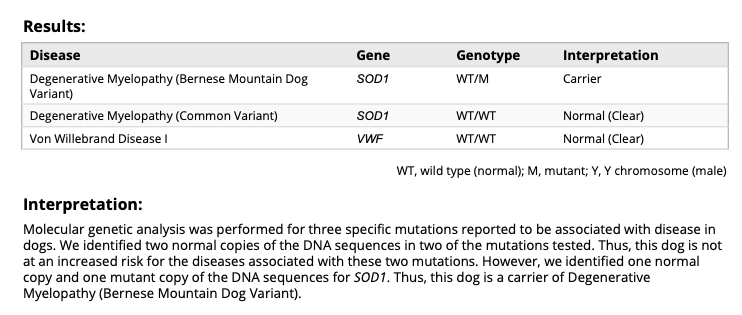 Aayla us a carrier for DM; however, when she is breed with Draco (clear) her puppies have no chance of being affected.