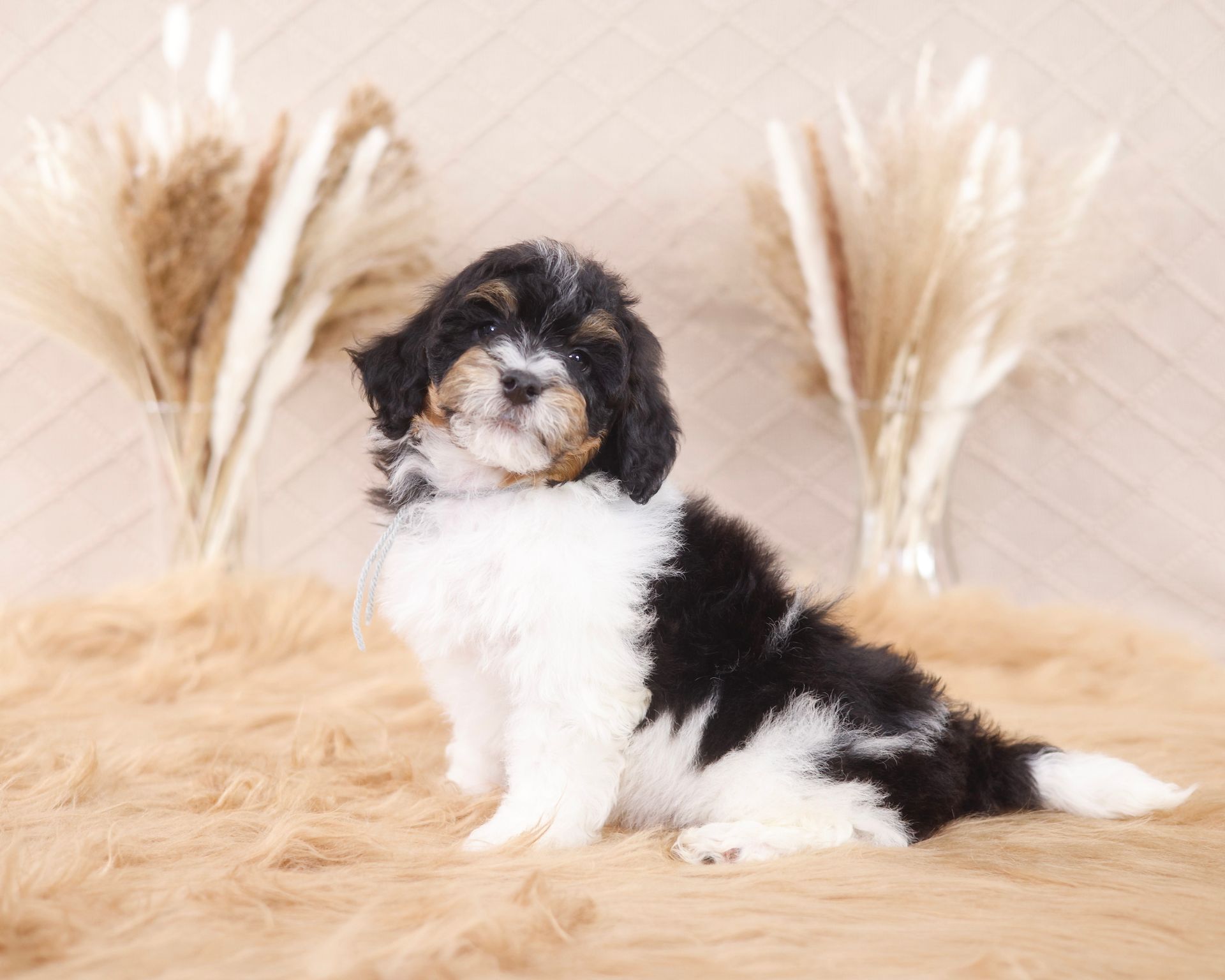 Featured below are tri-parti F1b bernedoodles from Kimberlee's Kennels!