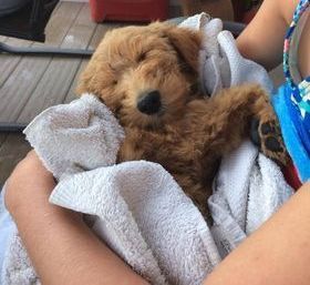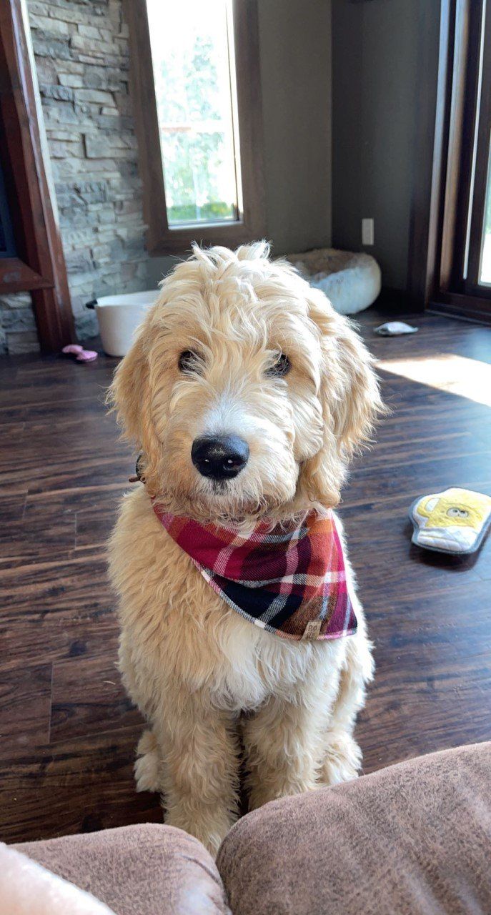 "Hi there! We have had Booker now since July and he’s about 6 months now. He a f1 standard English doodle from Pearl and Olaf I believe. We just absolutely love him and are so impressed with how smart and well mannered he is! He has even surprised us with his bird hunting skills!! We just wanted to give you guys some updated pictures 🥰 thank you for our dream dog! He’s really just the best dog for us, we can’t say enough good things about Kimberlee’s Kennels. I hope everyone can have a dog like Booker🥰Abby Randt."