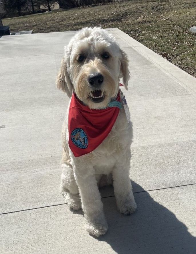 Finley Sue is from Freya/Olaf and was born in Sept. 2021. Finley has been busy since she came home, and I wanted to share what she has been up to. Shortly after coming home, I realized that her (mostly) calm demeanor and love of all people would make her a great therapy dog.