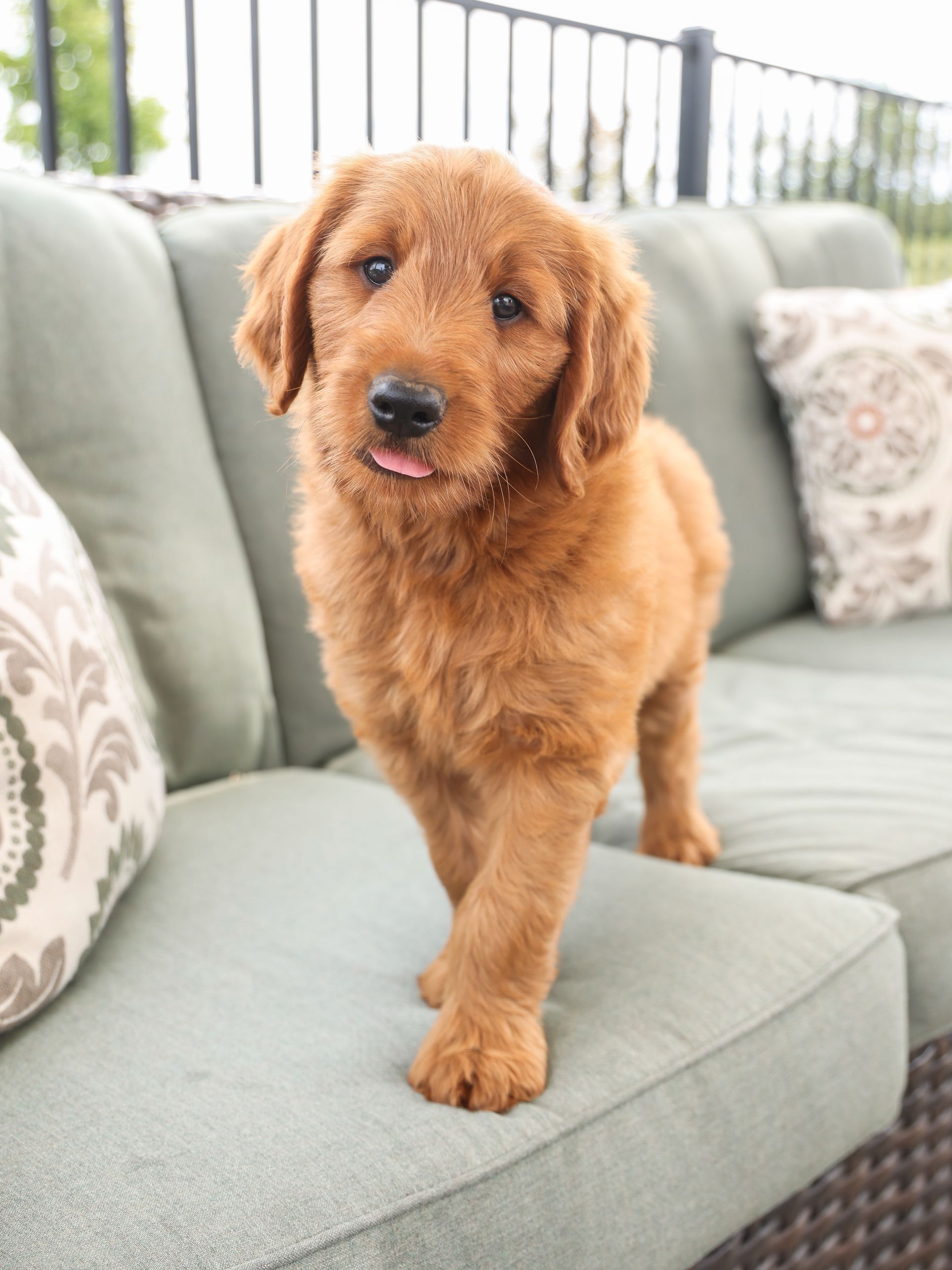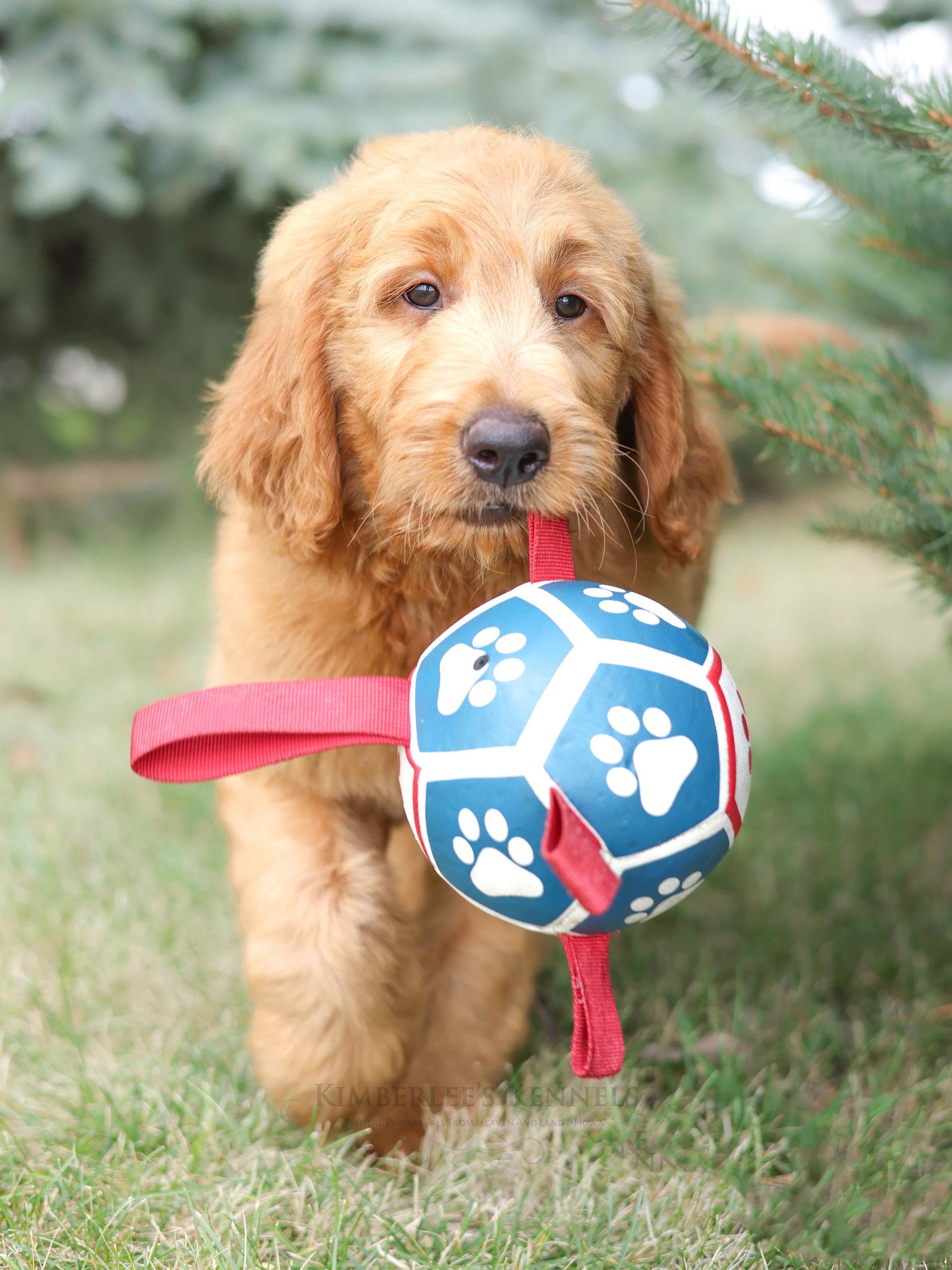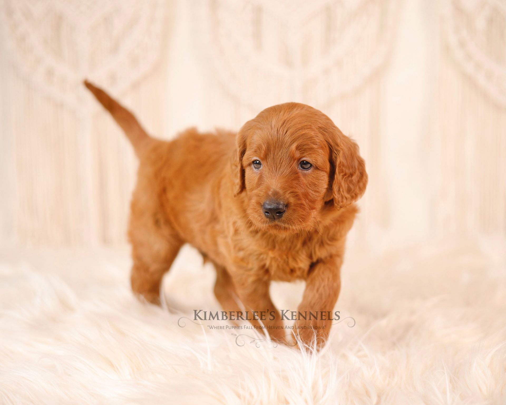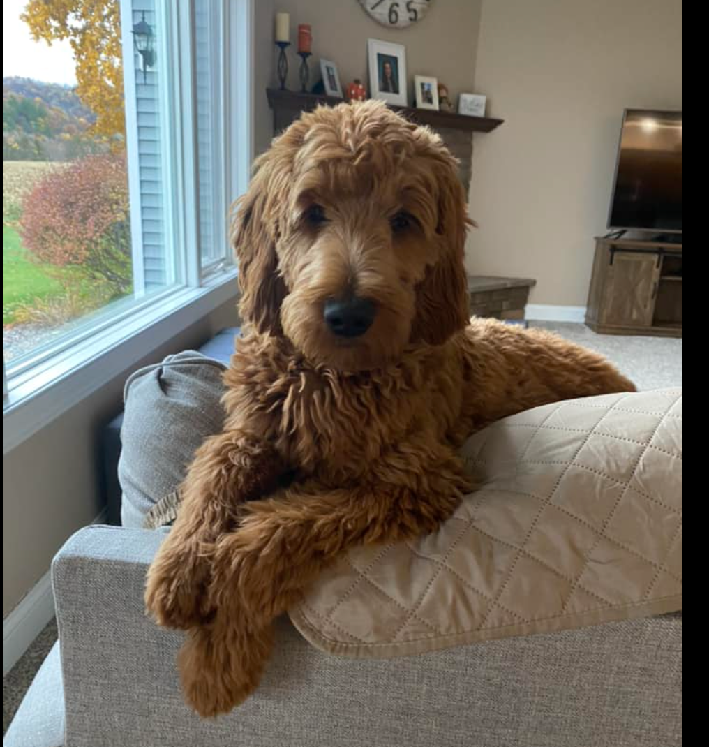 Graceful Ginger is a show-stopping poodle! Her vibrant red coat and round puppy-dog eyes turns heads wherever she goes. Her coat is thick and shiny with the softest curls. Her coat is one of many defining features. Ginger features a perfect build; a square body, straight back, and an overall air of elegance to herself. Ginger has long low-set ears and a black button nose giving her the cutest cartoon expression. Ginger is 39 pounds and over 22 inches to her shoulders. Ginger can simply be described as "extra sweet". She loves love and is the most loyal girl. Ginger is always happy to greet you and will do a whole body wiggle to show how happy she is! Ginger loves being pampered, snuggling, and ear scratches. There is no mean bone in Ginger's body as she gets along with new people and all dogs. Ginger has absolutely stole the hearts of everyone she meets. She is the type of poodle that everyone strives to have. Her personality is safe and family friendly. Ginger loves all treats, especially a cold pup cup on warm summer days. Ginger loves playing fetch and romping around our creek. Her calm confidence lets her handle stress with ease. Nothing phases our Ginger. We could truly go on forever about Ginger's loving and caring temperament. Ginger is also a nurturing and patience mother who deeply bonds with her puppies.