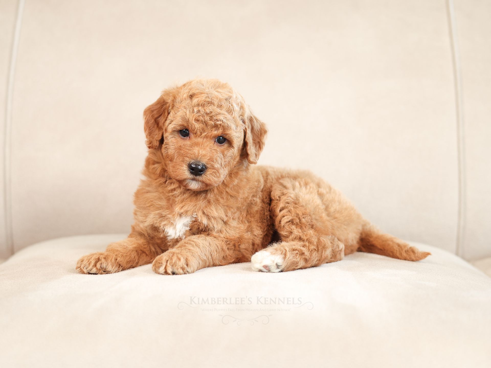 Honey, sister to Raine, was born and raised here at Kimberlee's kennels from our Xena and Hawk. Xena is an AKC golden retriever while Hawk is an AKC standard poodle. Both of Honey's parents are now retired and live in wonderful pet homes. Honey comes from a long lineage of well breed, beautiful, healthy, and family-friendly tempered dogs.
