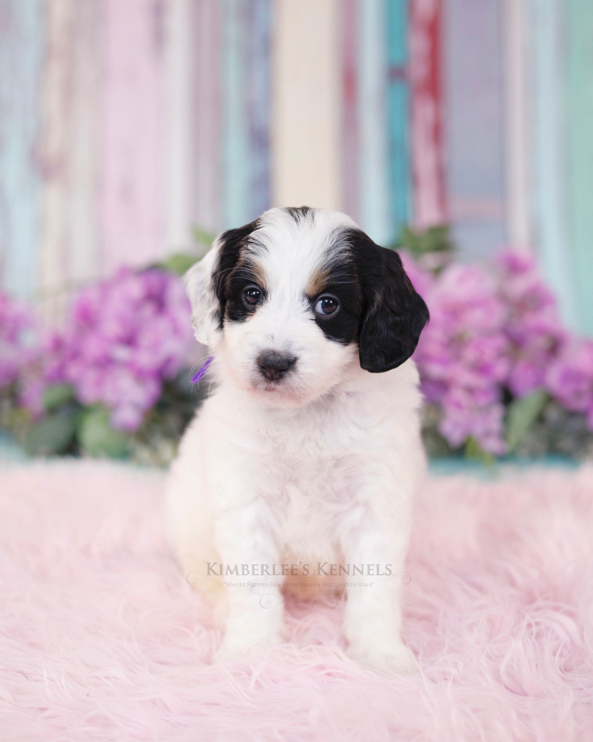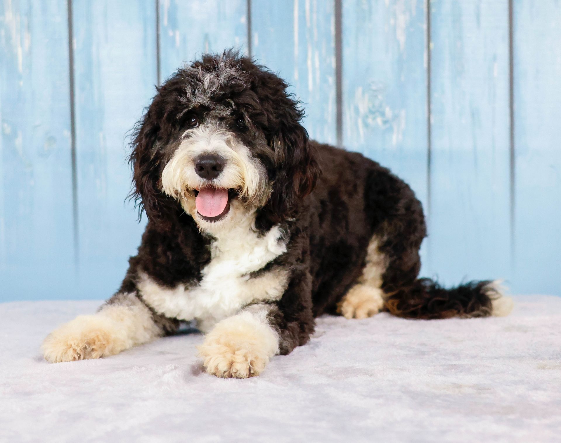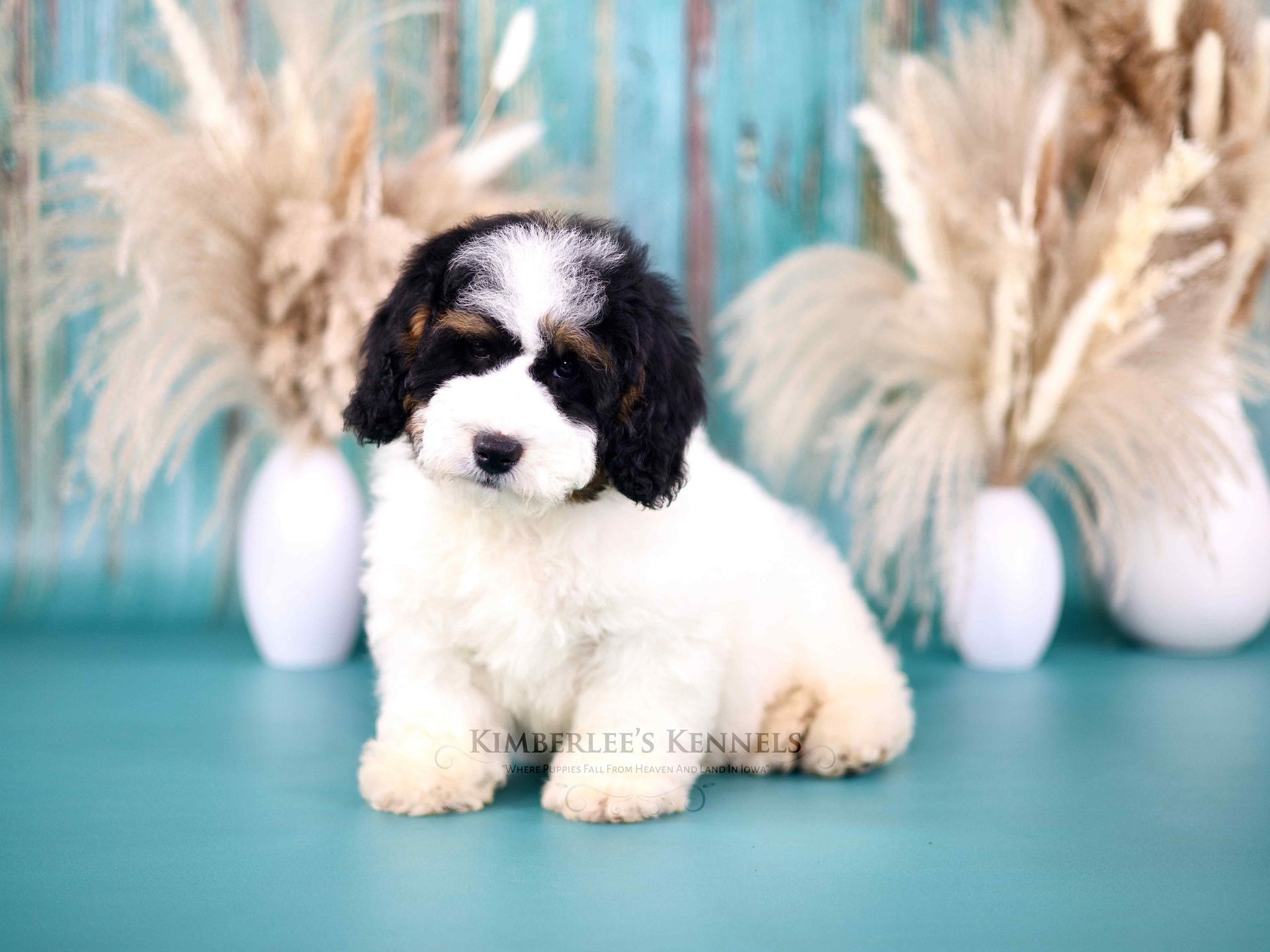 A happy-go-lucky female that loves life. She carries sweetness in the eyes and will melt you with her affection. She has great conformation and a wonderful thick and plush coat. We adore her large white chest and bright white muzzle. She is currently 60 pounds. Kahlua makes people smile with her tender and radiant demeanor. Kahlua has always been a wonderful mother. She enjoys playing fetch, engaging with other dogs, or exploring our farm.