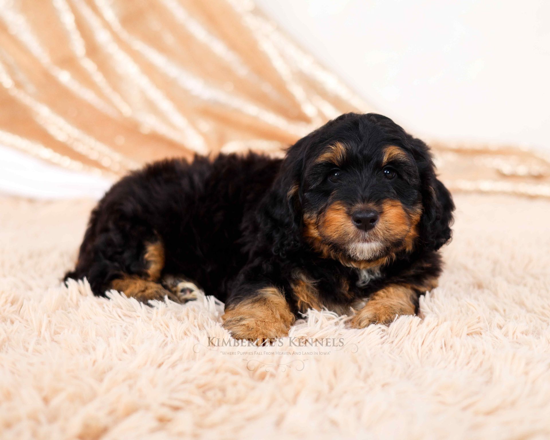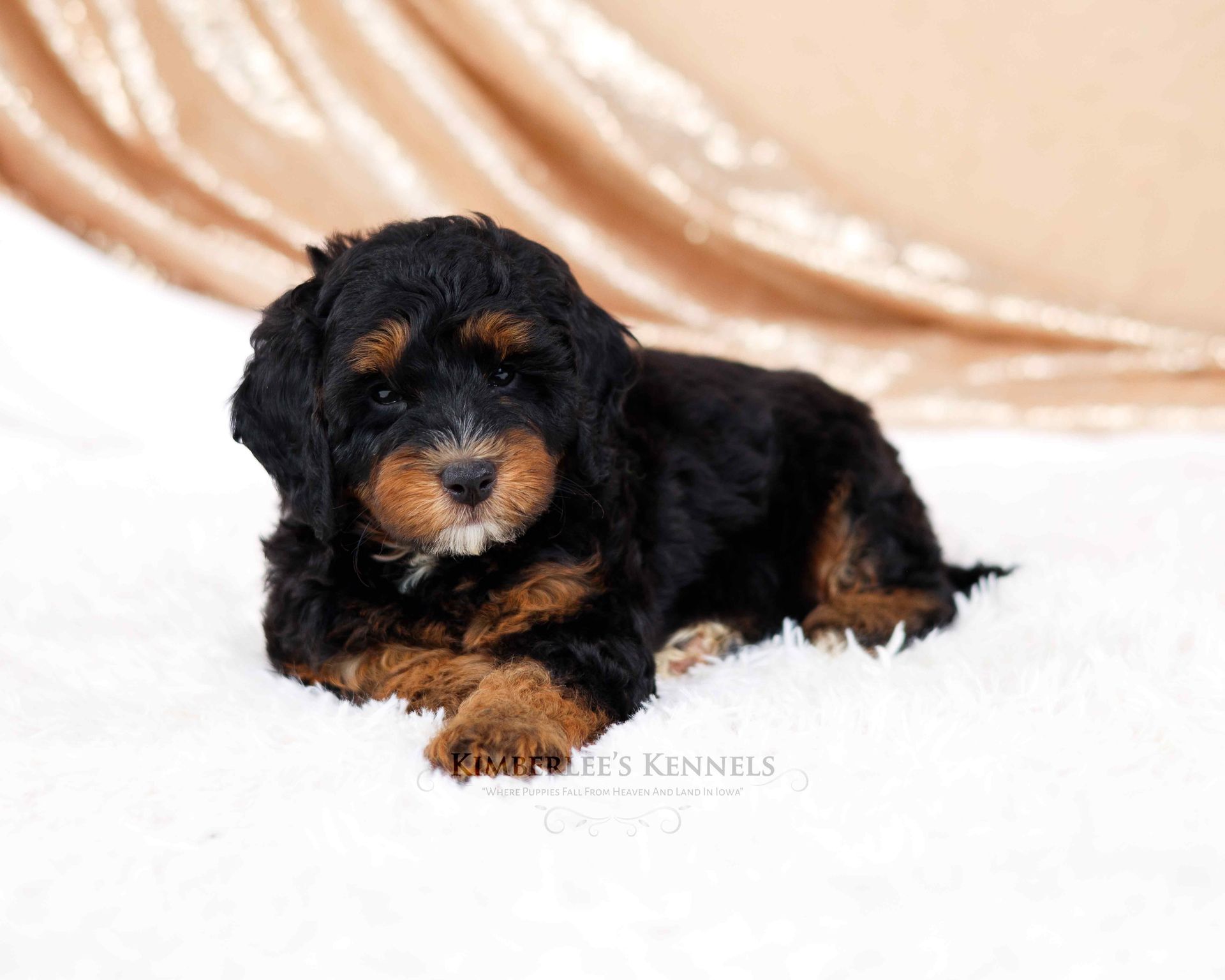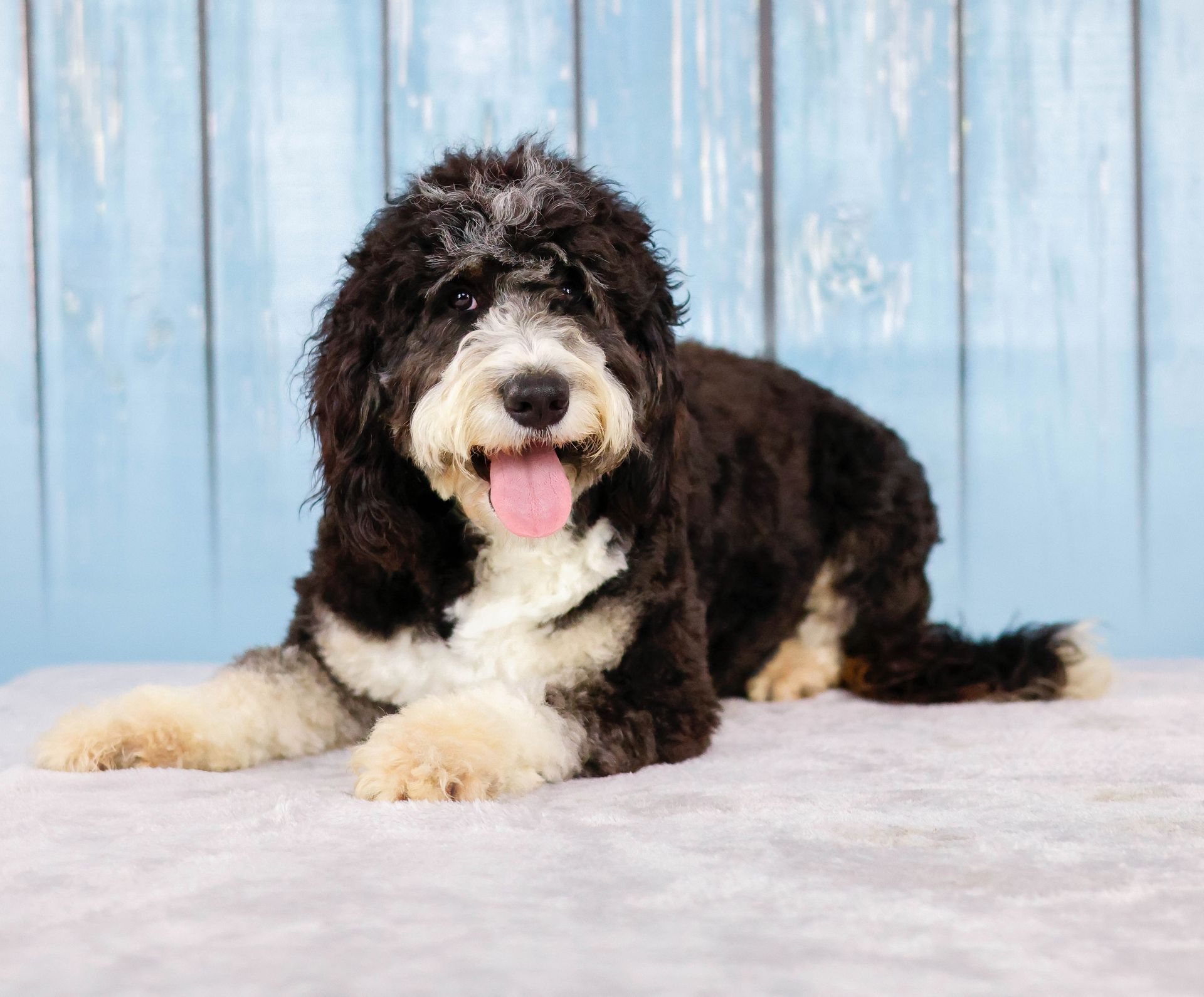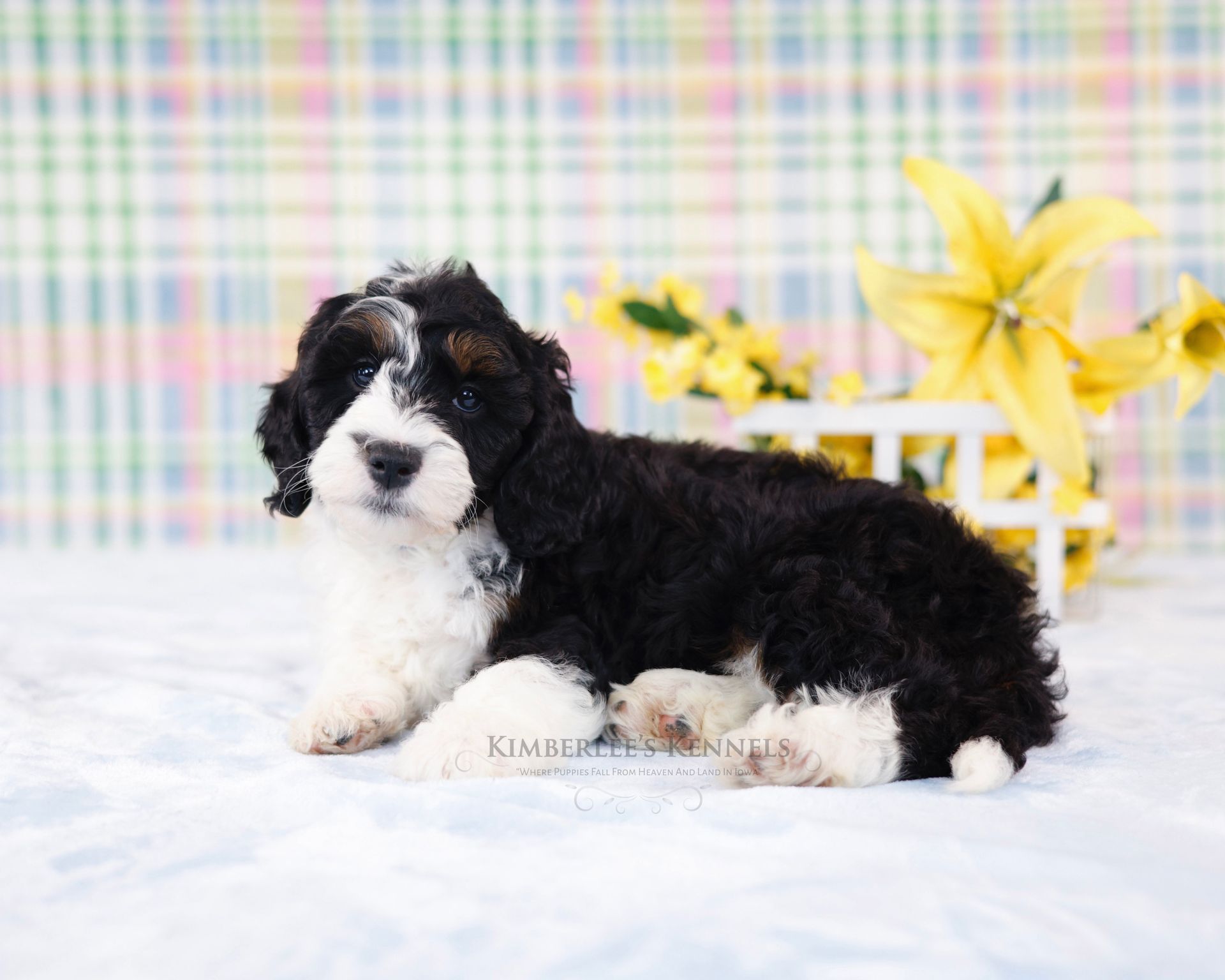 A happy-go-lucky female that loves life. She carries sweetness in the eyes and will melt you with her affection. She has great conformation and a wonderful thick and plush coat. We adore her large white chest and bright white muzzle. She is currently 60 pounds. Kahlua makes people smile with her tender and radiant demeanor. Kahlua has always been a wonderful mother. She enjoys playing fetch, engaging with other dogs, or exploring our farm.