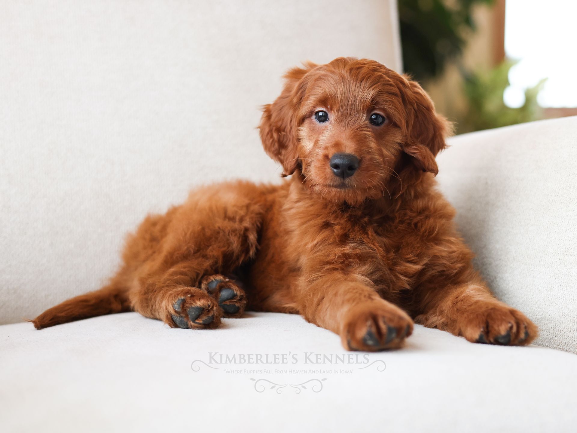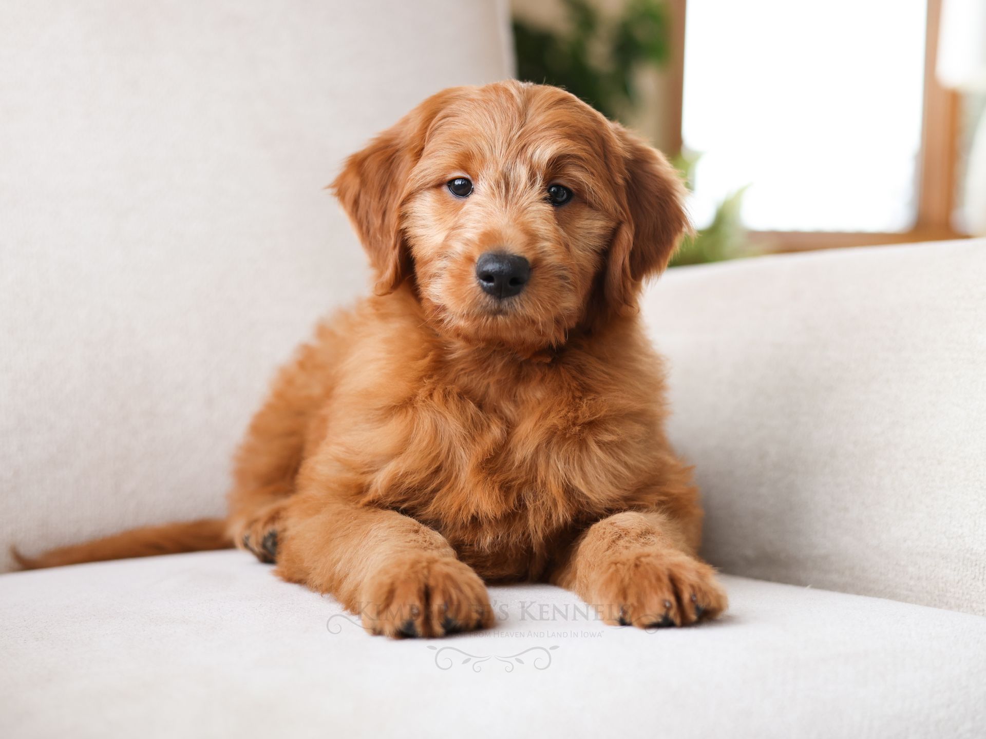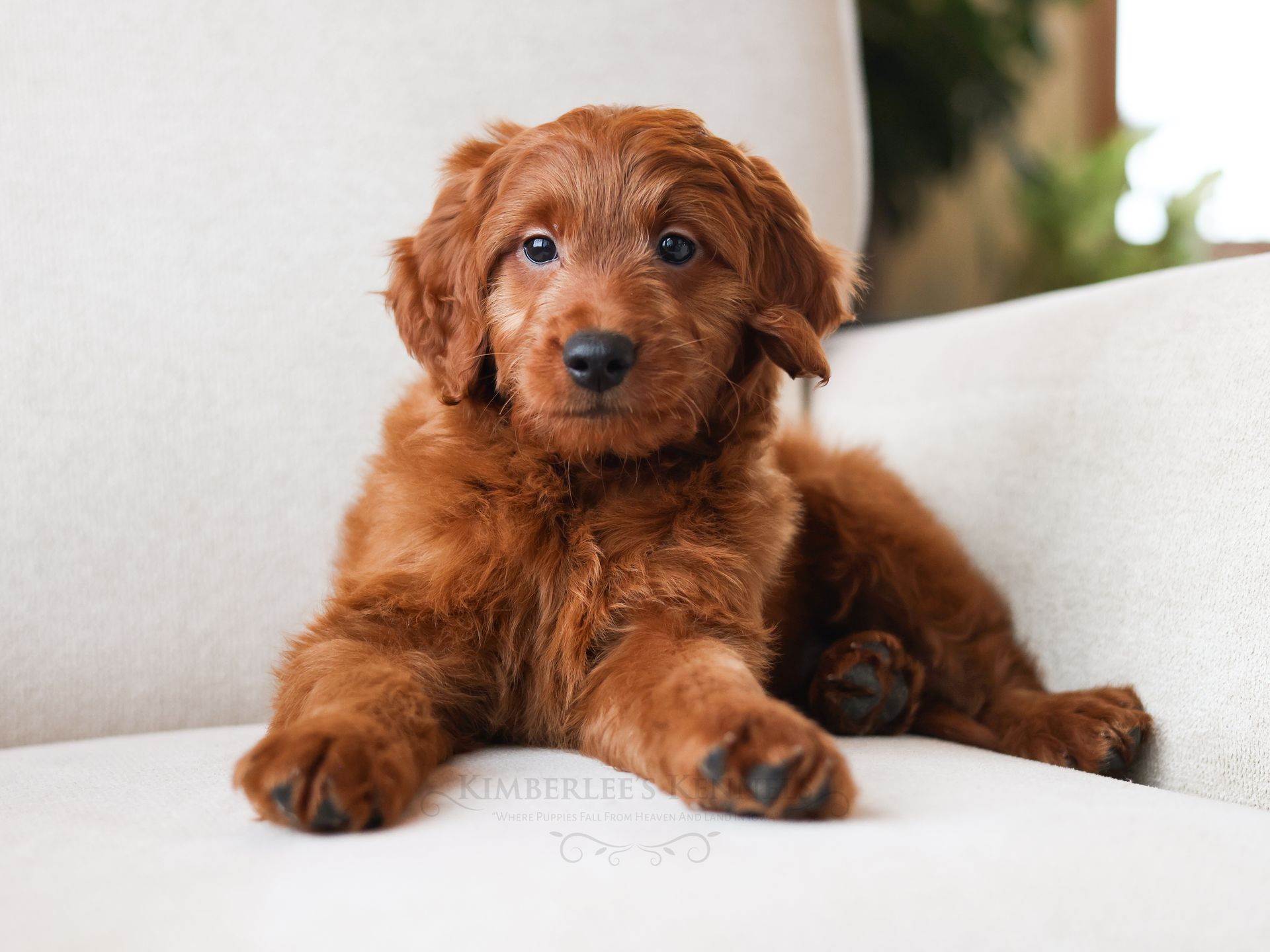 Chip is among the smallest puppies of his litter and may mature around 30 pounds. Chip has rounded features, a shorter build, and round pouty eyes that are sure to draw you in. Chip's coat is buttery soft and the most beautiful vibrant red color. Chip is very people oriented and loves to cuddle. He seems to be more low- energy and well mannered. Chip's even personality and friendly sweet demeanor will make him a perfect companion for any family.