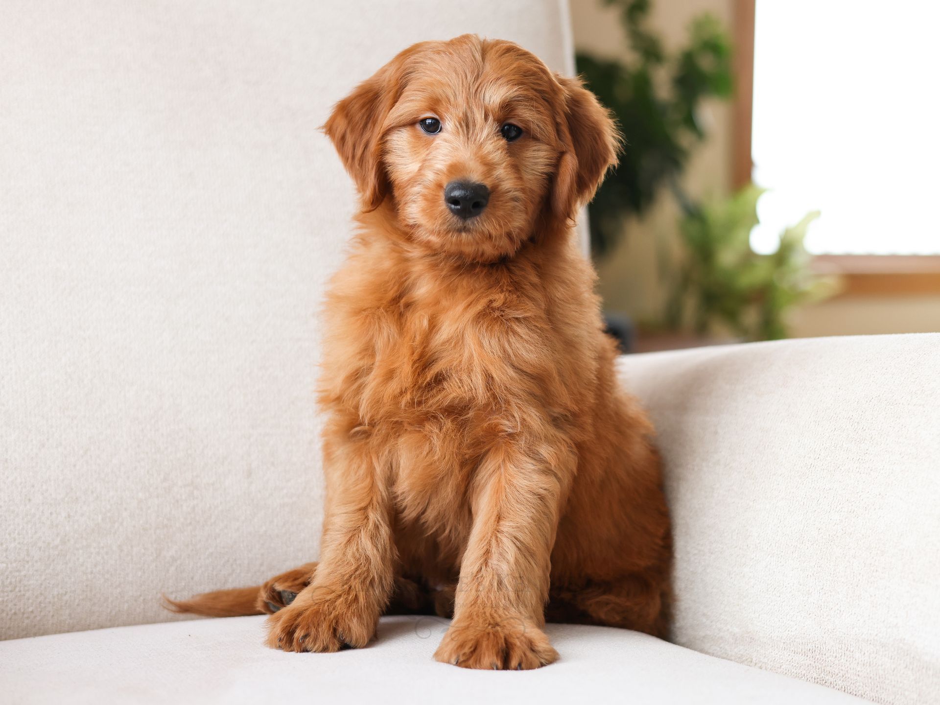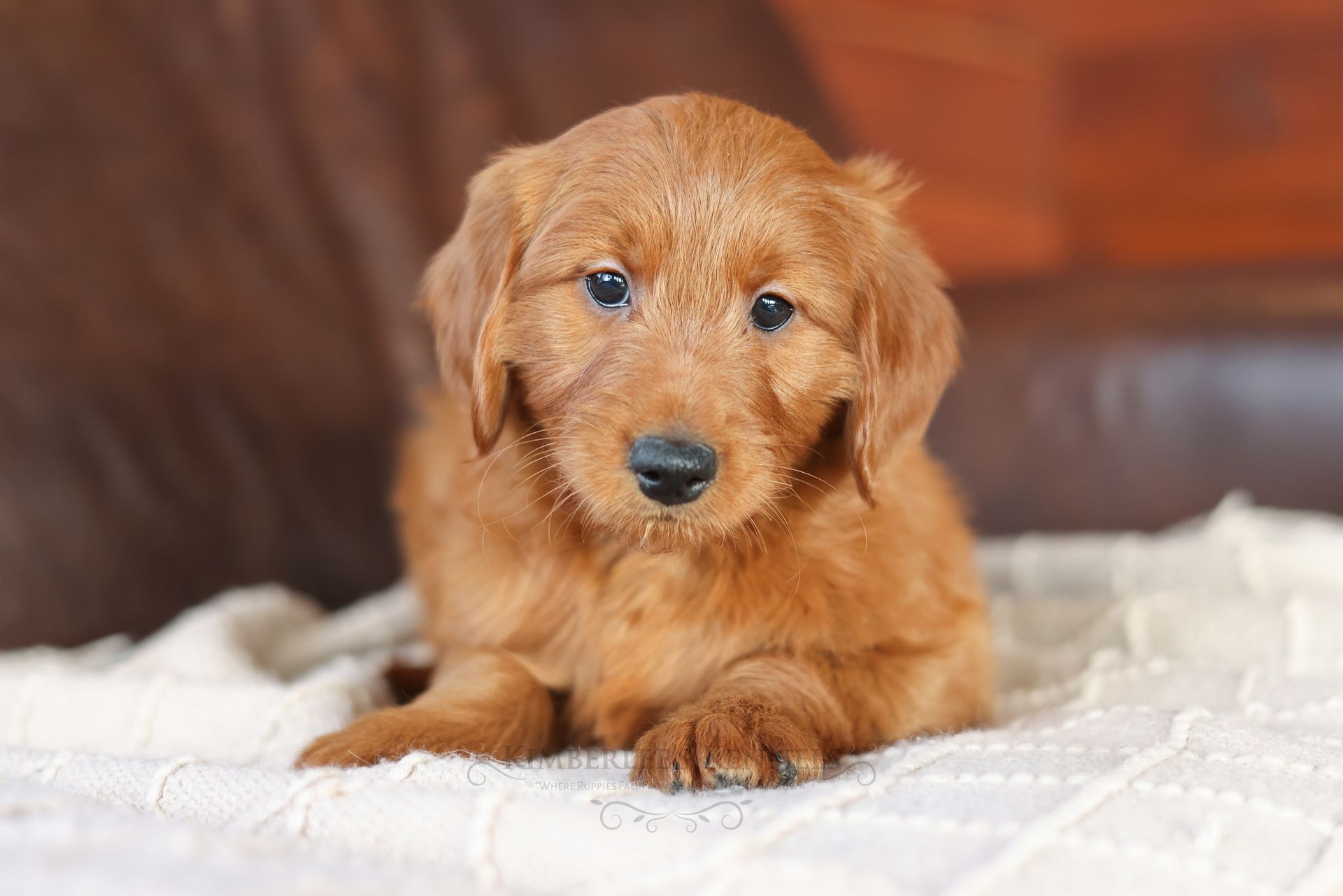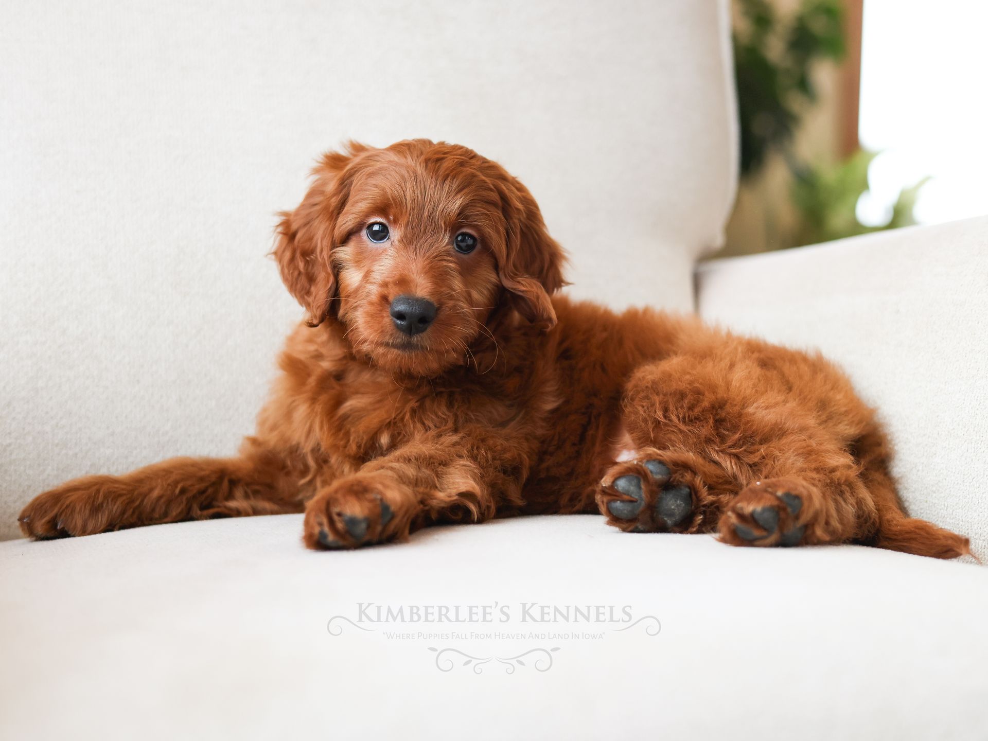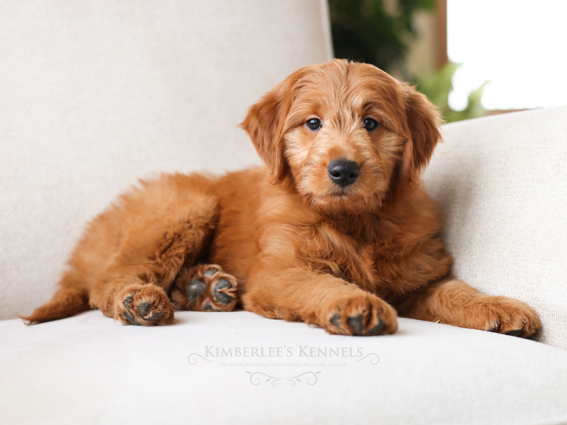 Chip is among the smallest puppies of his litter and may mature around 30 pounds. Chip has rounded features, a shorter build, and round pouty eyes that are sure to draw you in. Chip's coat is buttery soft and the most beautiful vibrant red color. Chip is very people oriented and loves to cuddle. He seems to be more low- energy and well mannered. Chip's even personality and friendly sweet demeanor will make him a perfect companion for any family.