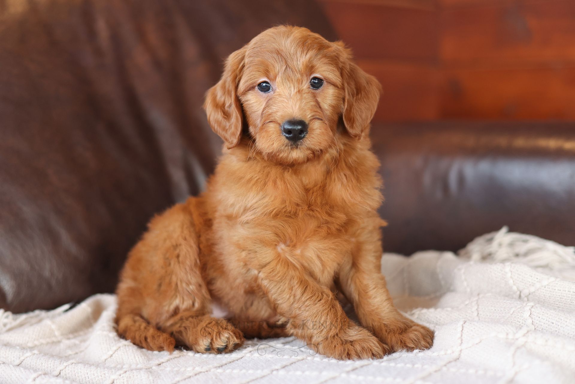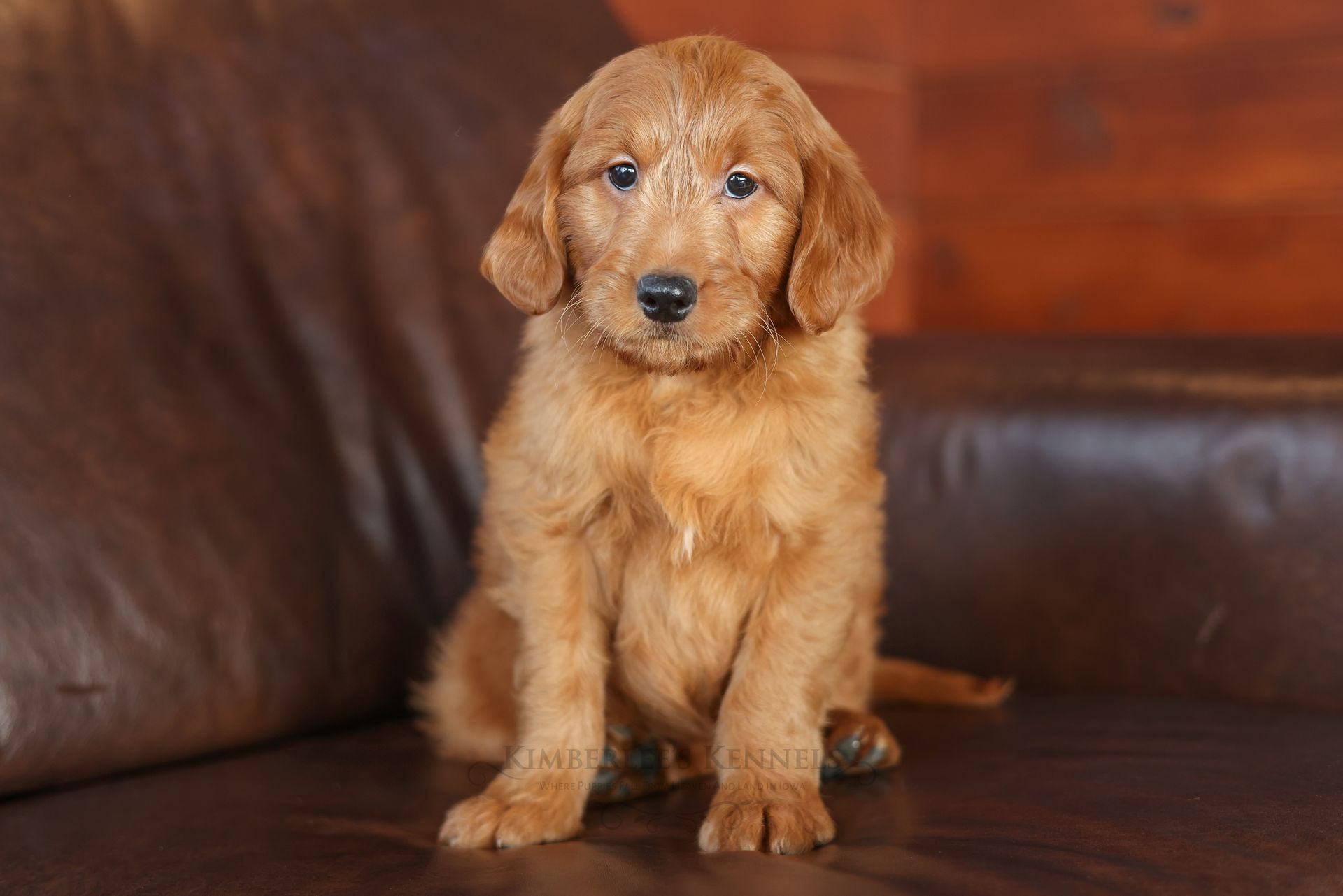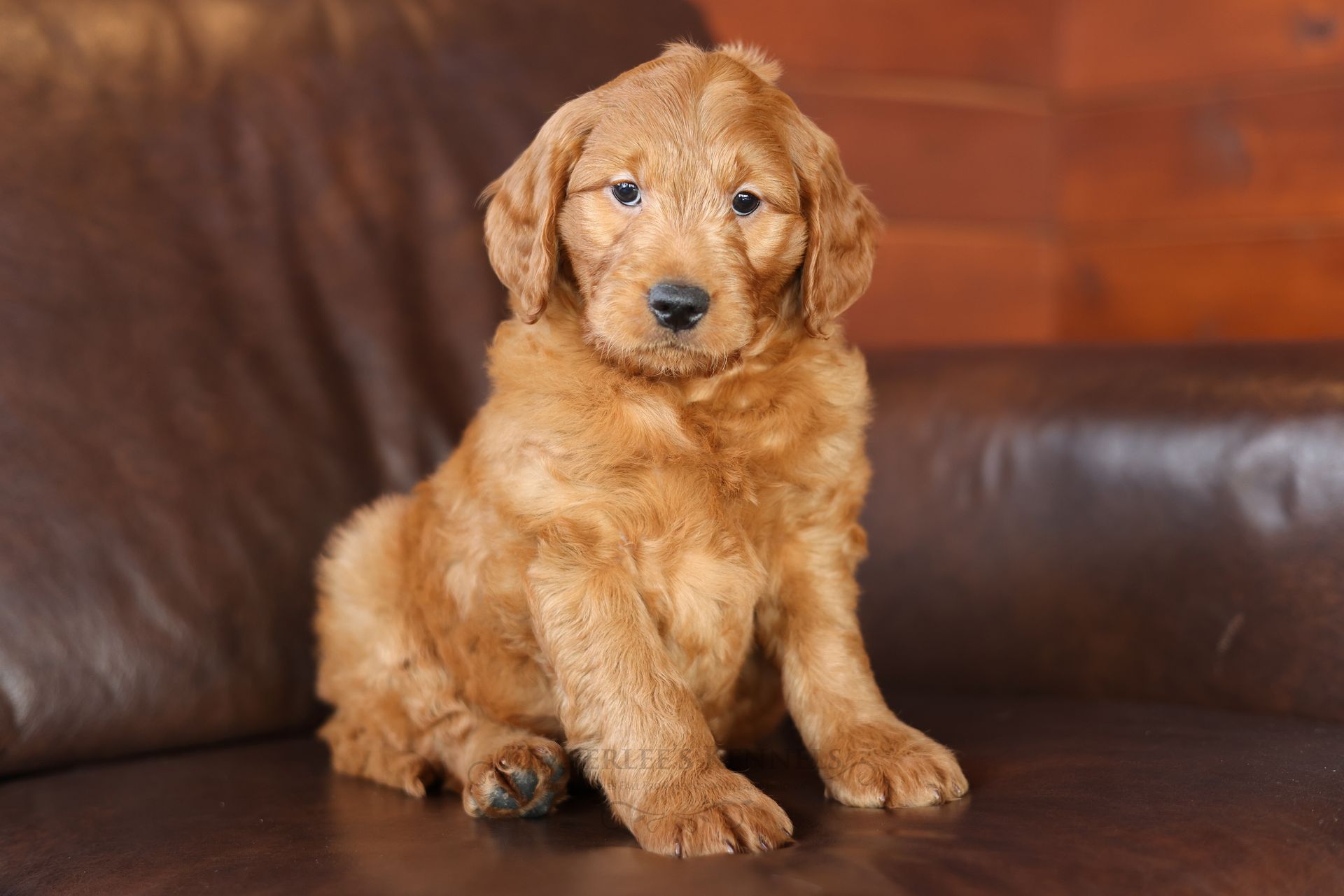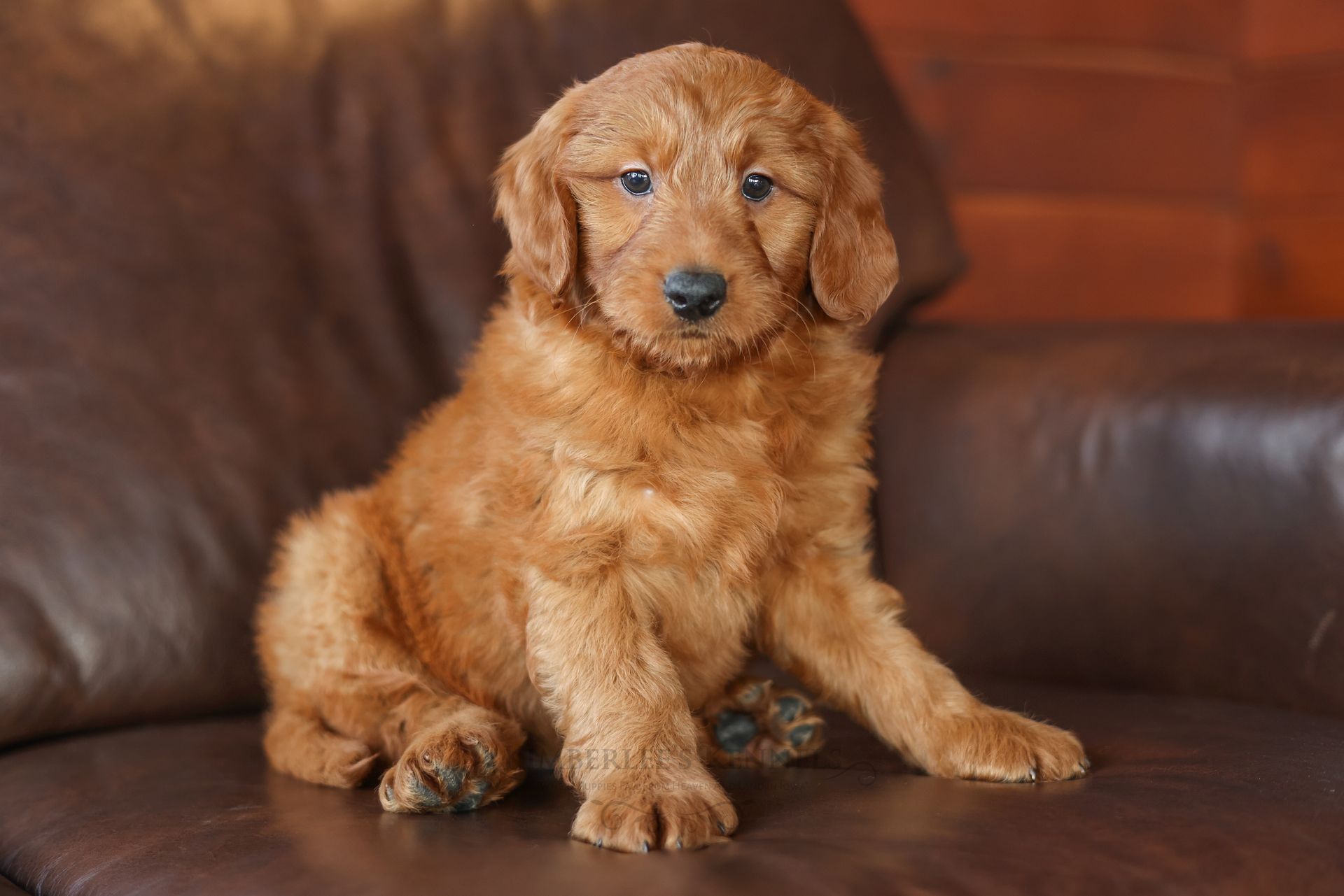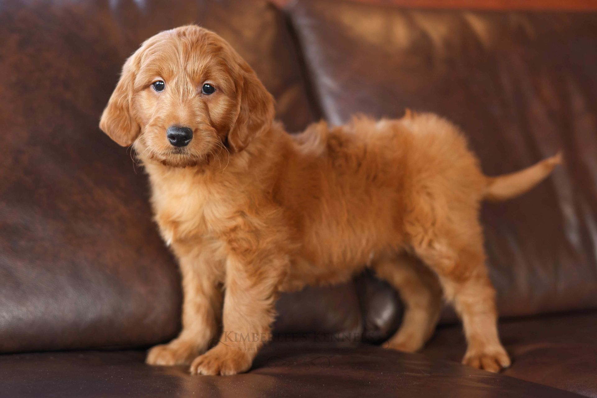 Everyone who meets Cheeto is instantly in love, he is such a joy to be around. Cheeto is an easy going and content puppy. He’s curious, positive, and confidence. He loves all types of social interactions from playing fetch, to meeting new puppies, to romping around with children. Cheeto loves receiving attention and is always ready to give lots of puppy kisses. Cheeto has a fun-spirited puppy energy to himself. However, even when he is most excited he is polite and will not be pushy or jumpy. Cheeto is enthusiastic with an excitement to learn, he already knows to sit patiently for affection. He's the smallest male and may mature around 30 pounds. His coat is shiny, healthy, and features a buttery soft wave. Cheeto's coat is a rich mahogany color and his black button nose adds nice contrast.