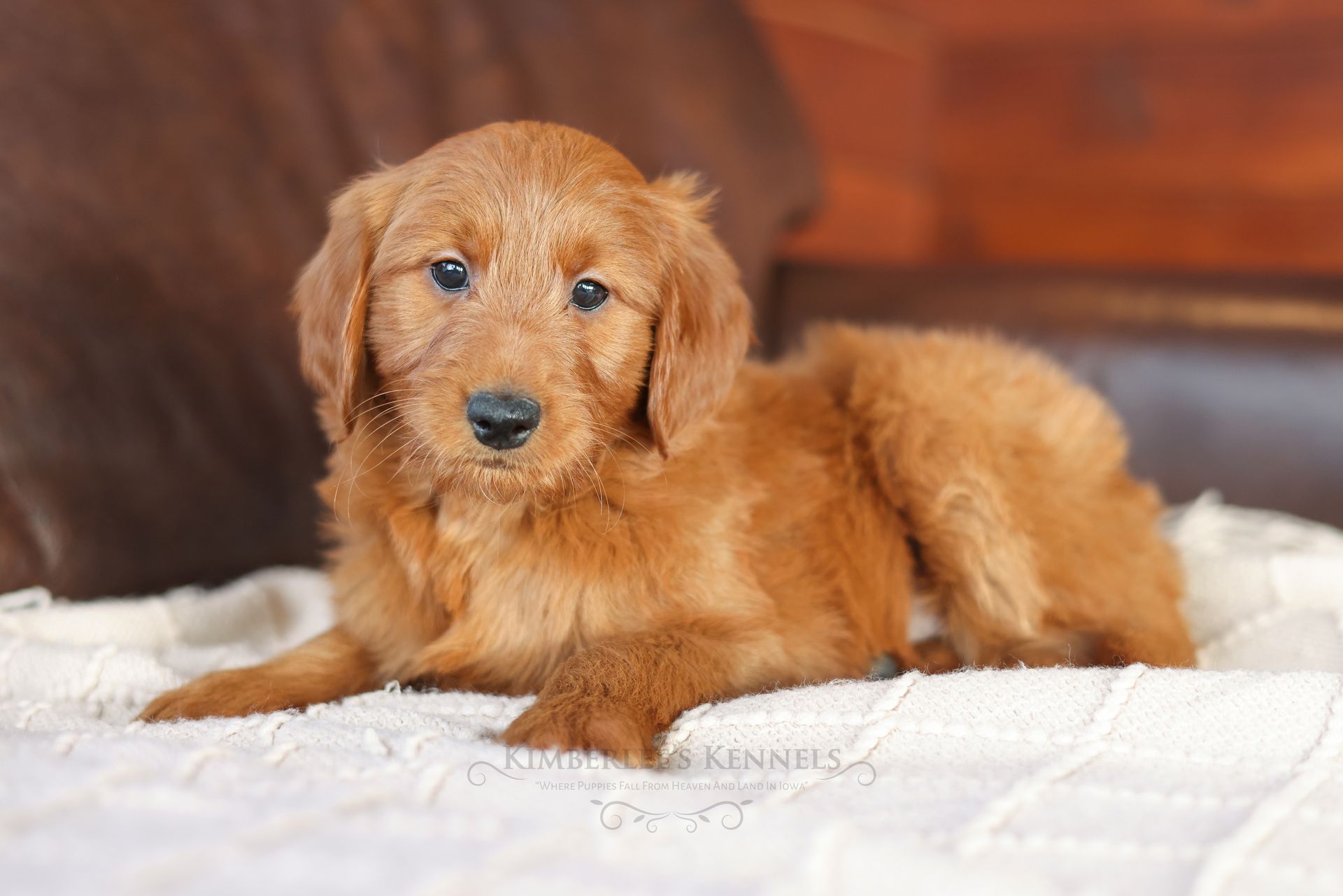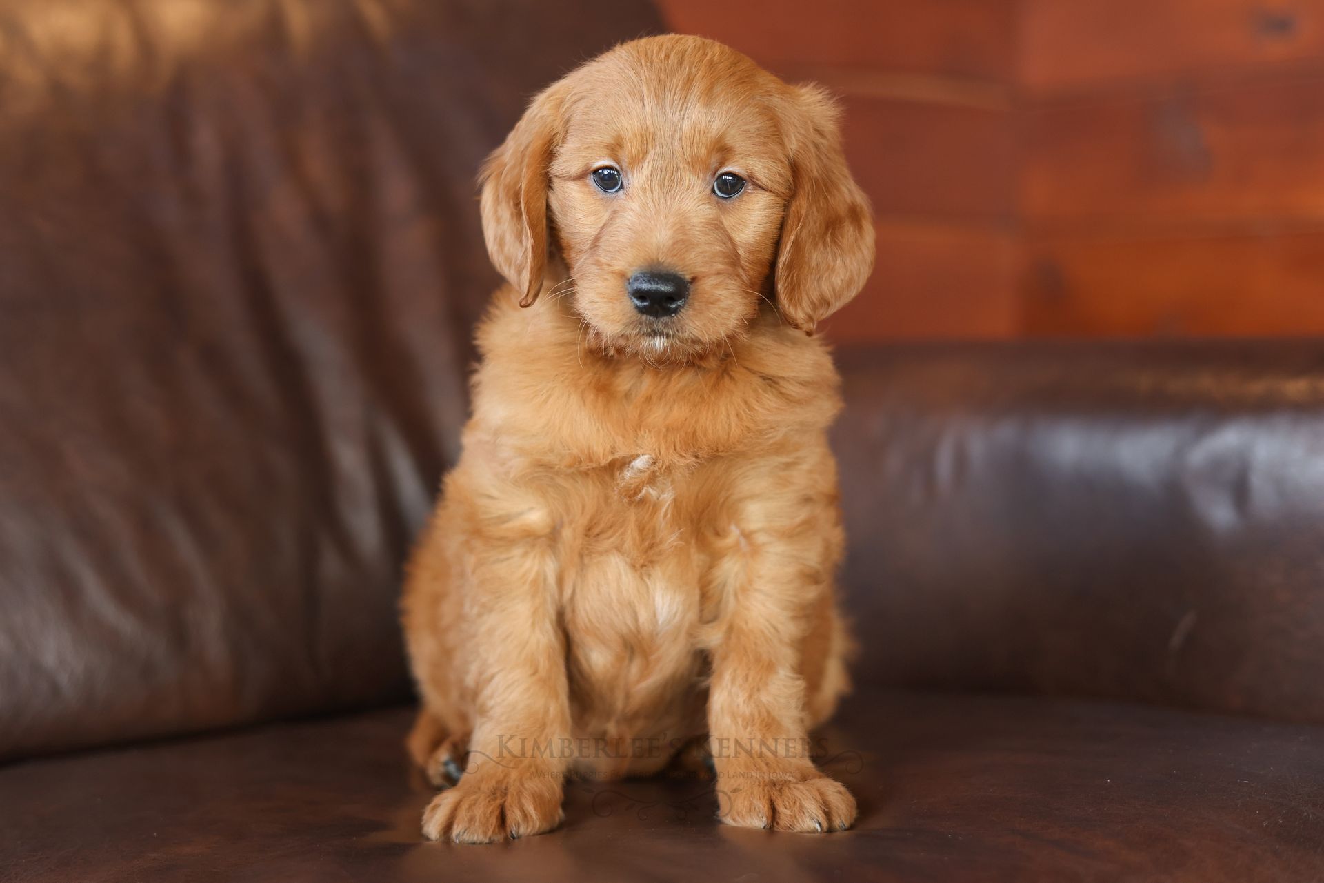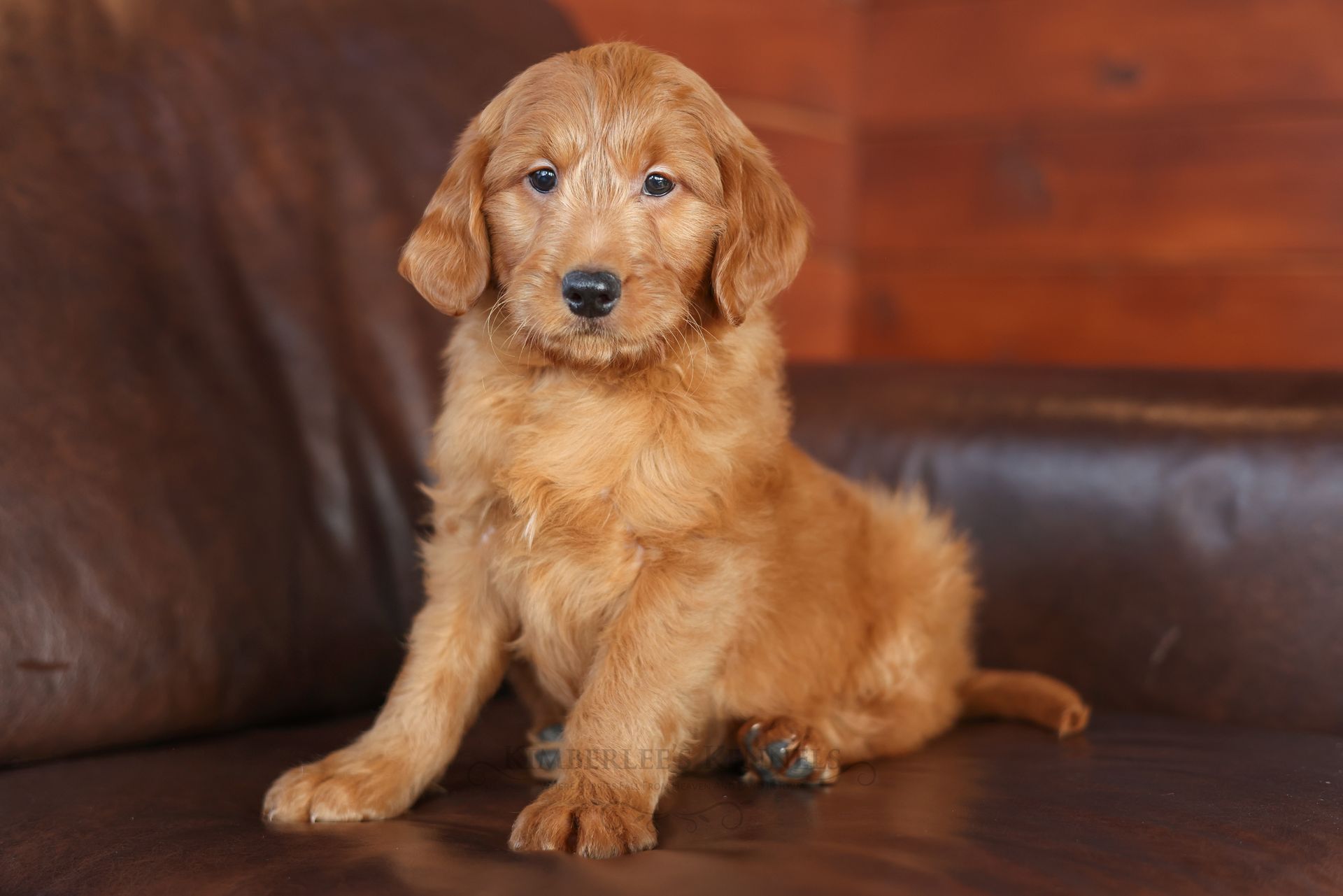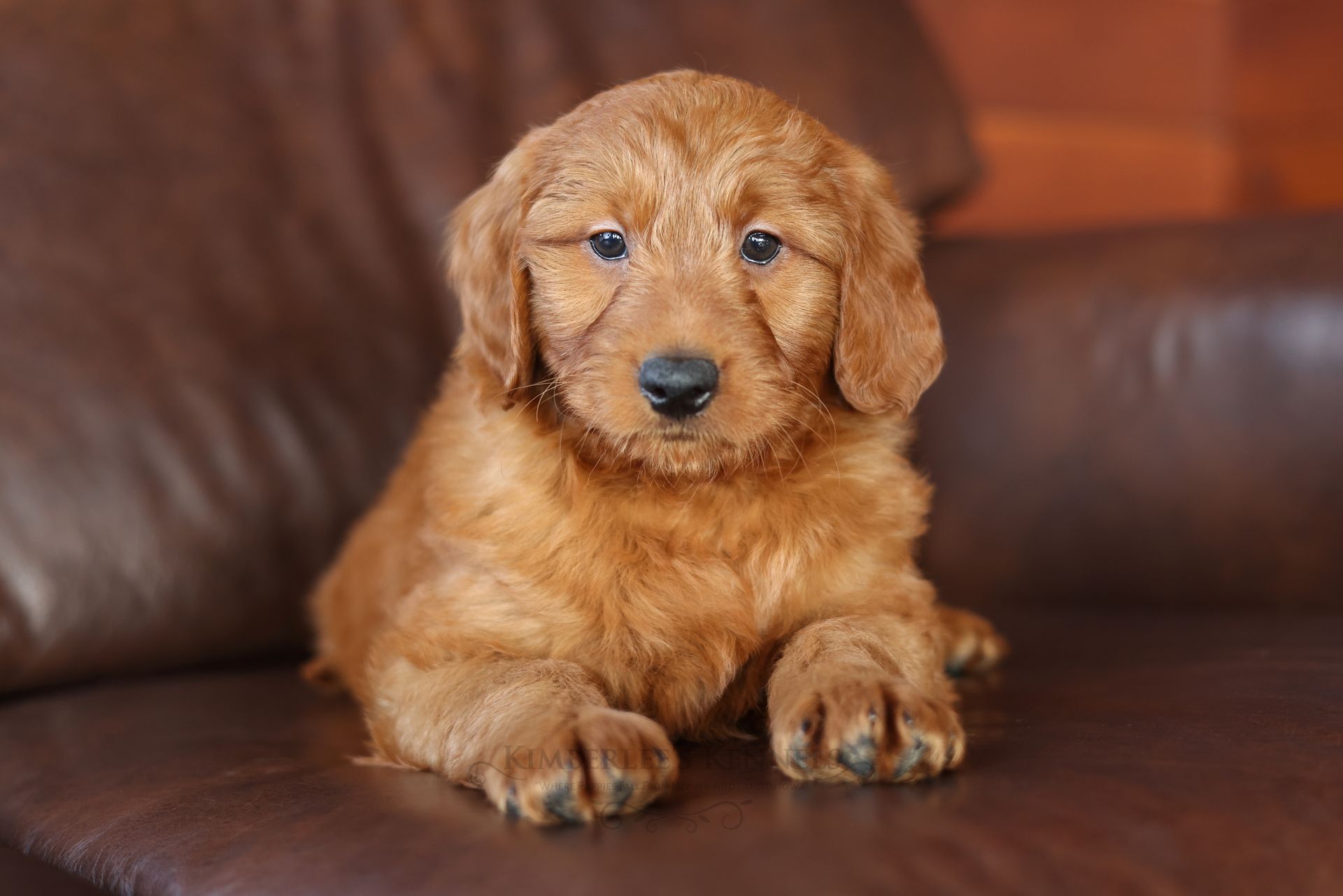 Everyone who meets Cheeto is instantly in love, he is such a joy to be around. Cheeto is an easy going and content puppy. He’s curious, positive, and confidence. He loves all types of social interactions from playing fetch, to meeting new puppies, to romping around with children. Cheeto loves receiving attention and is always ready to give lots of puppy kisses. Cheeto has a fun-spirited puppy energy to himself. However, even when he is most excited he is polite and will not be pushy or jumpy. Cheeto is enthusiastic with an excitement to learn, he already knows to sit patiently for affection. He's the smallest male and may mature around 30 pounds. His coat is shiny, healthy, and features a buttery soft wave. Cheeto's coat is a rich mahogany color and his black button nose adds nice contrast.
