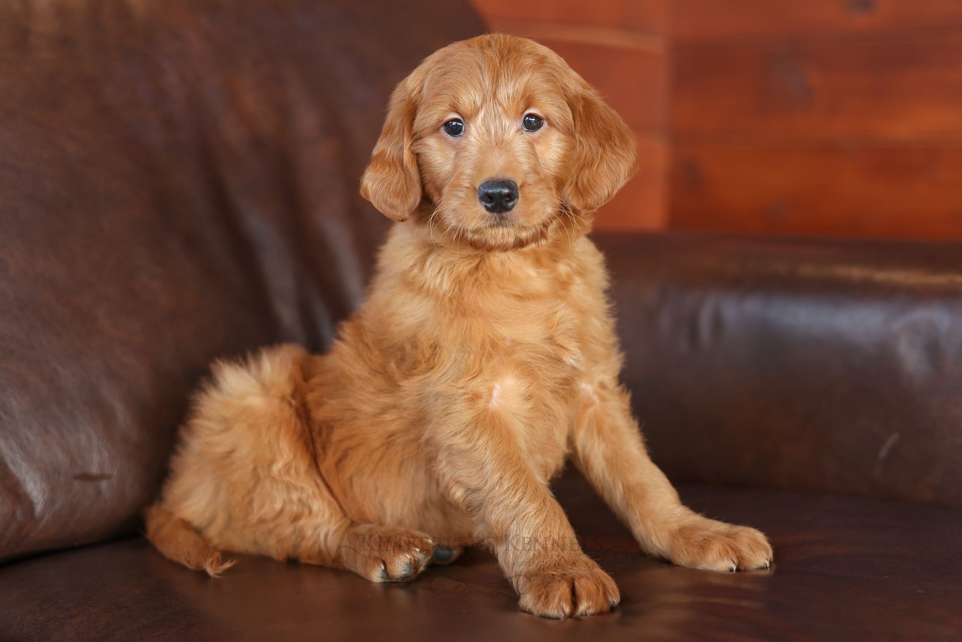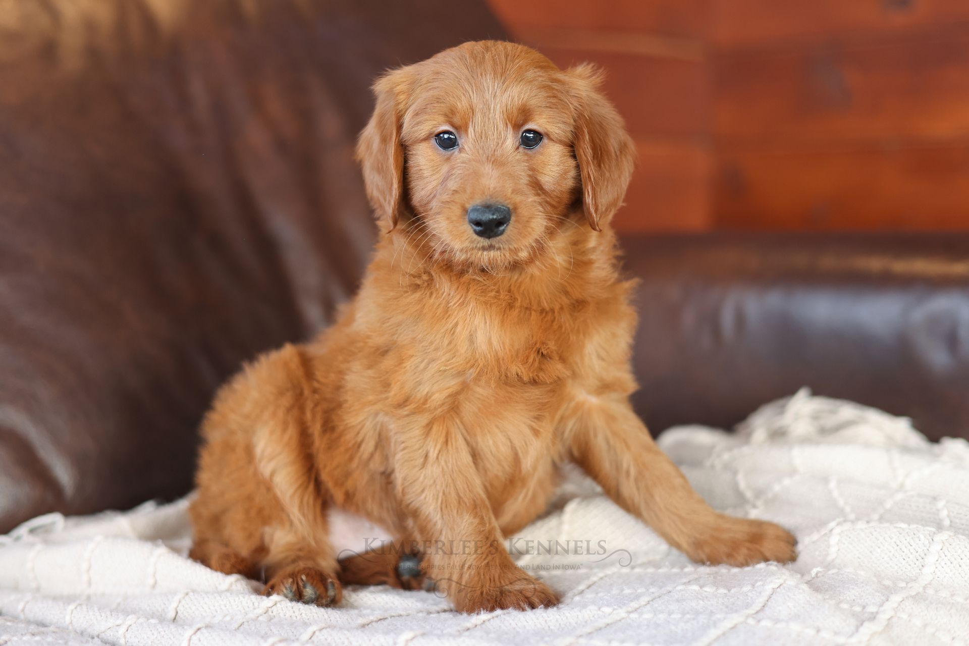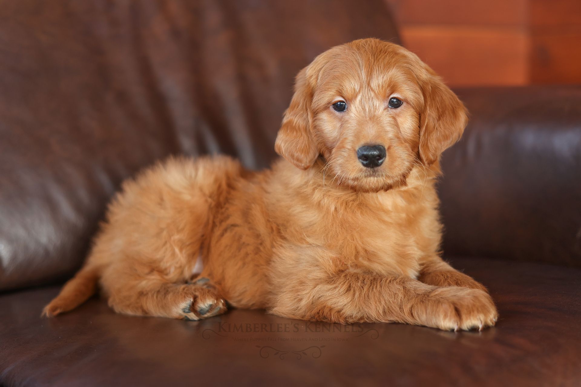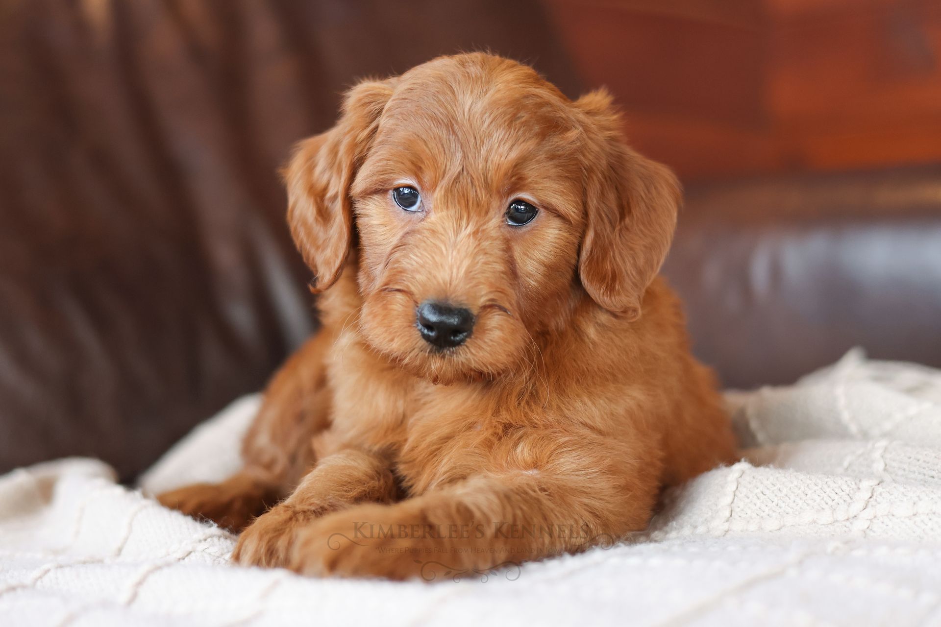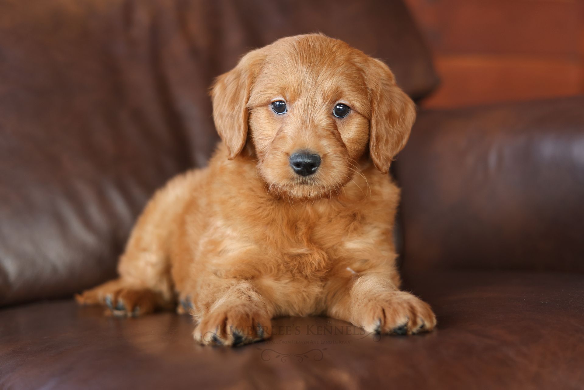 Everyone who meets Cheeto is instantly in love, he is such a joy to be around. Cheeto is an easy going and content puppy. He’s curious, positive, and confidence. He loves all types of social interactions from playing fetch, to meeting new puppies, to romping around with children. Cheeto loves receiving attention and is always ready to give lots of puppy kisses. Cheeto has a fun-spirited puppy energy to himself. However, even when he is most excited he is polite and will not be pushy or jumpy. Cheeto is enthusiastic with an excitement to learn, he already knows to sit patiently for affection. He's the smallest male and may mature around 30 pounds. His coat is shiny, healthy, and features a buttery soft wave. Cheeto's coat is a rich mahogany color and his black button nose adds nice contrast.