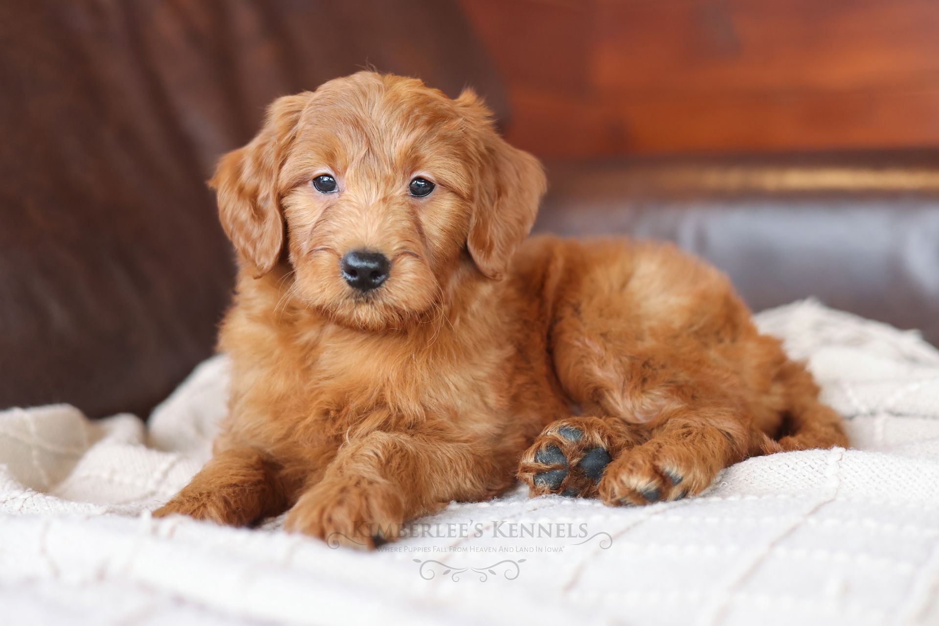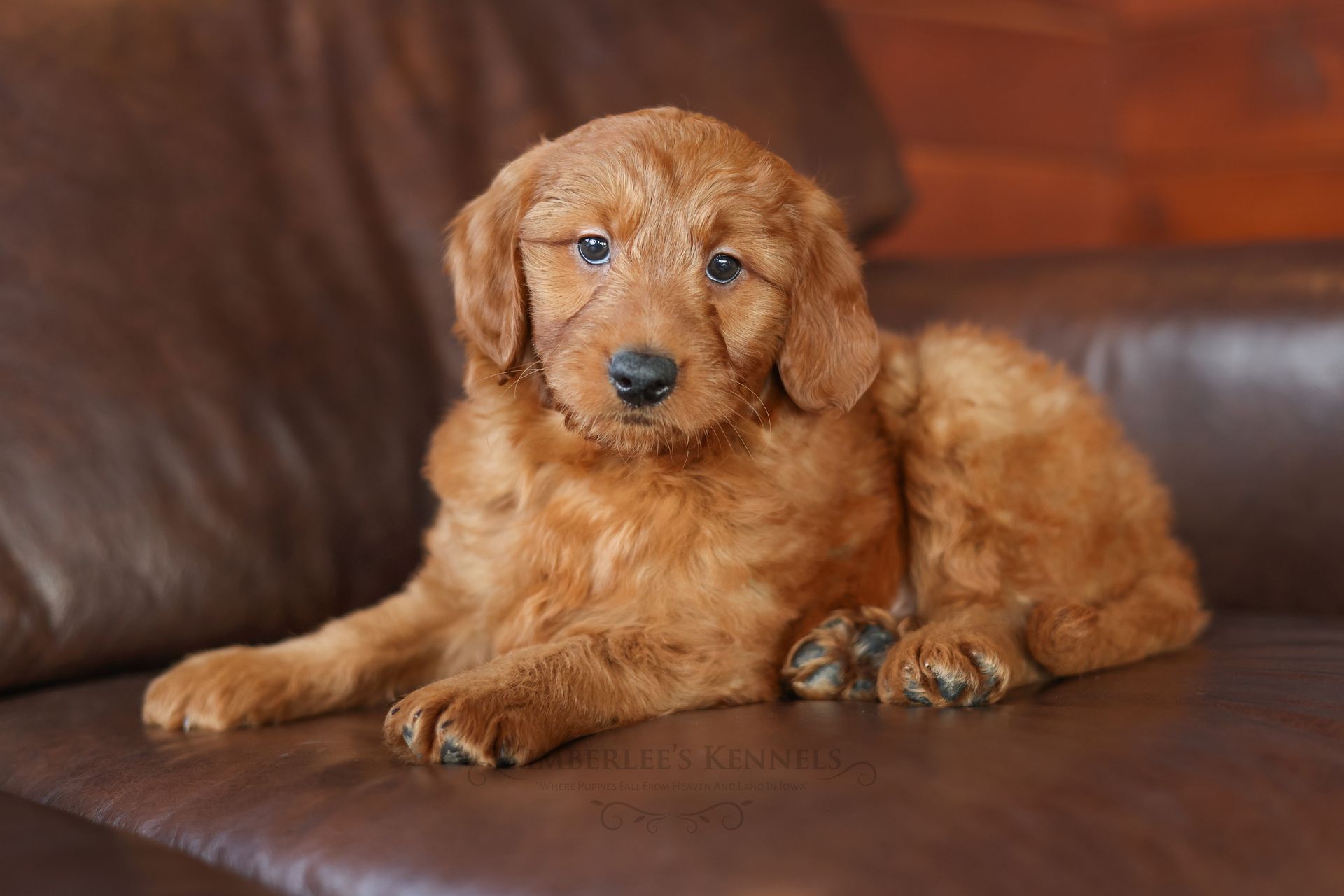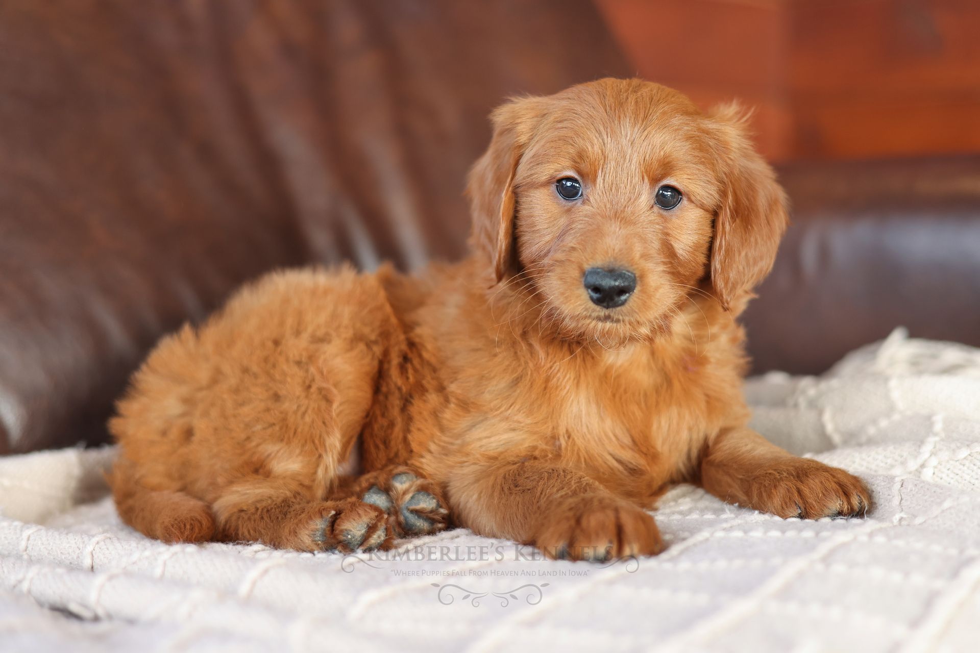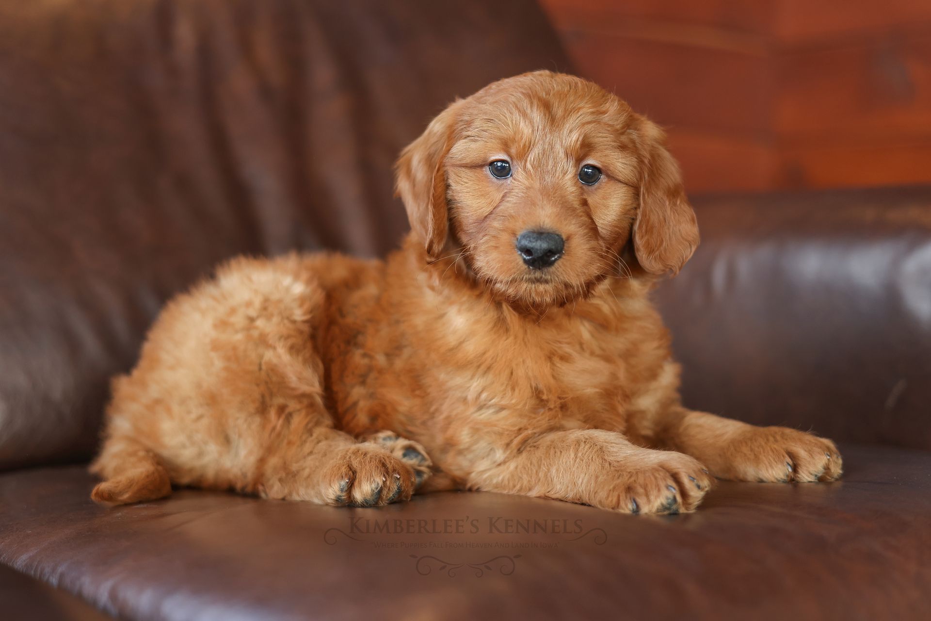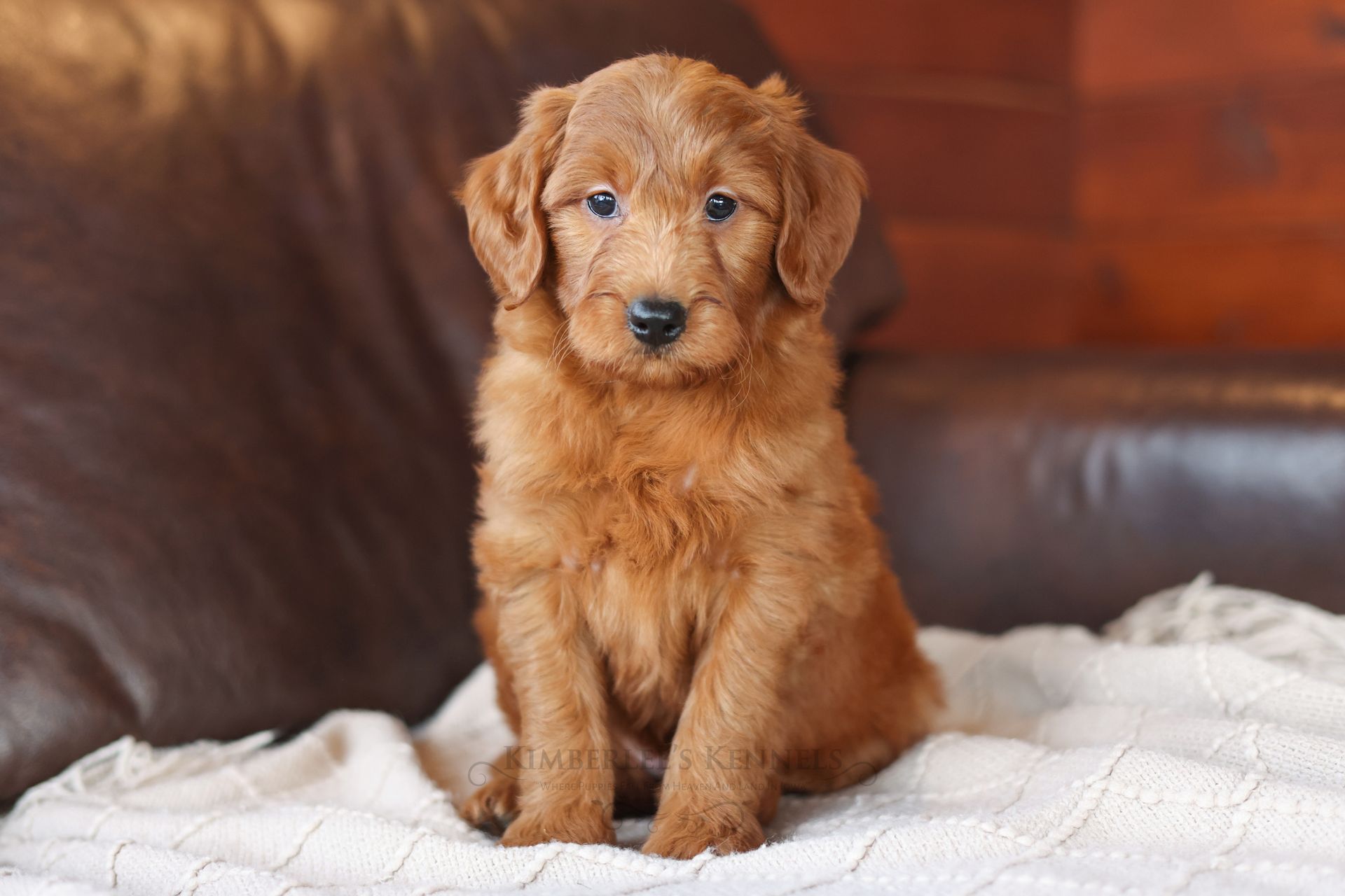 Everyone who meets Cheeto is instantly in love, he is such a joy to be around. Cheeto is an easy going and content puppy. He’s curious, positive, and confidence. He loves all types of social interactions from playing fetch, to meeting new puppies, to romping around with children. Cheeto loves receiving attention and is always ready to give lots of puppy kisses. Cheeto has a fun-spirited puppy energy to himself. However, even when he is most excited he is polite and will not be pushy or jumpy. Cheeto is enthusiastic with an excitement to learn, he already knows to sit patiently for affection. He's the smallest male and may mature around 30 pounds. His coat is shiny, healthy, and features a buttery soft wave. Cheeto's coat is a rich mahogany color and his black button nose adds nice contrast.