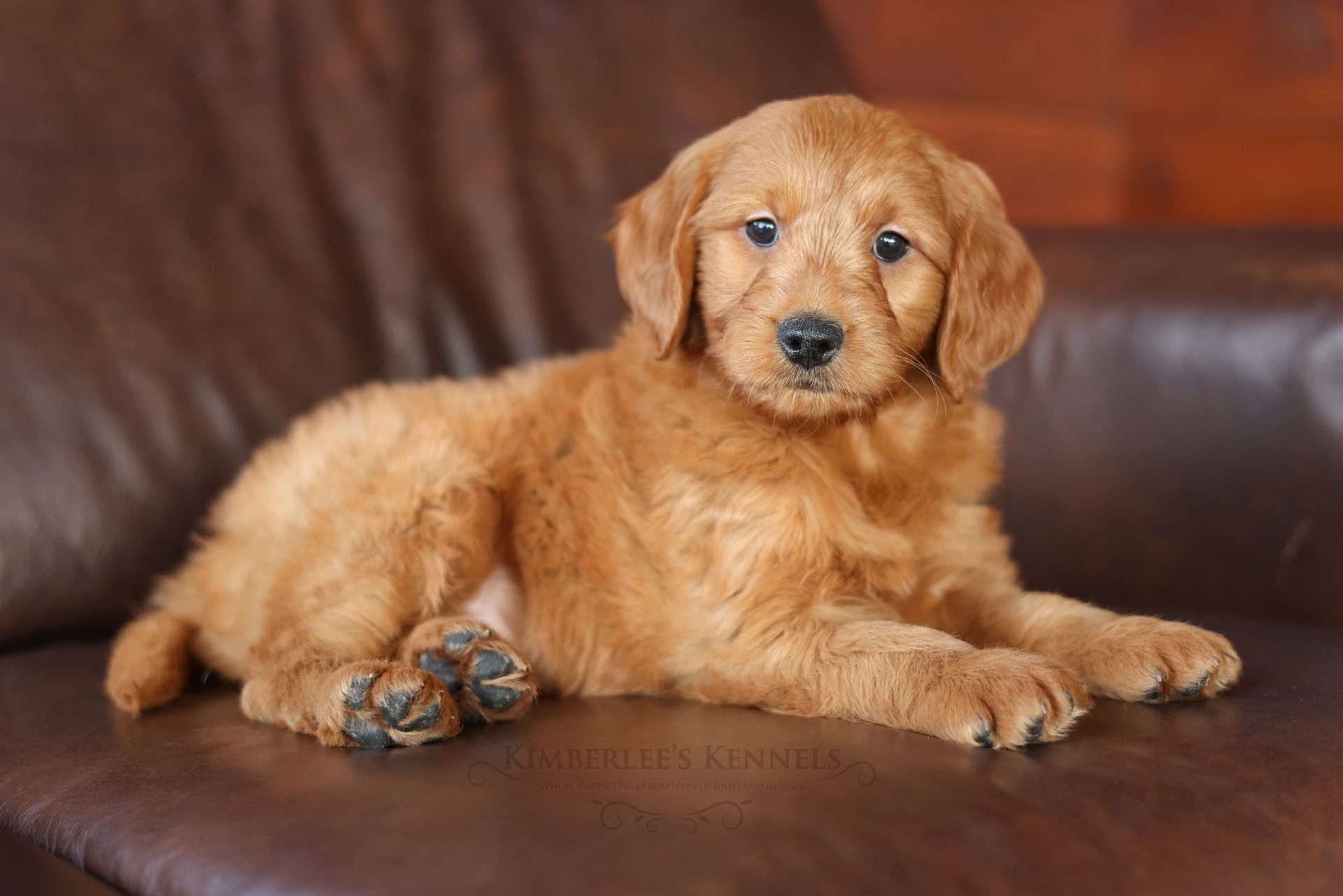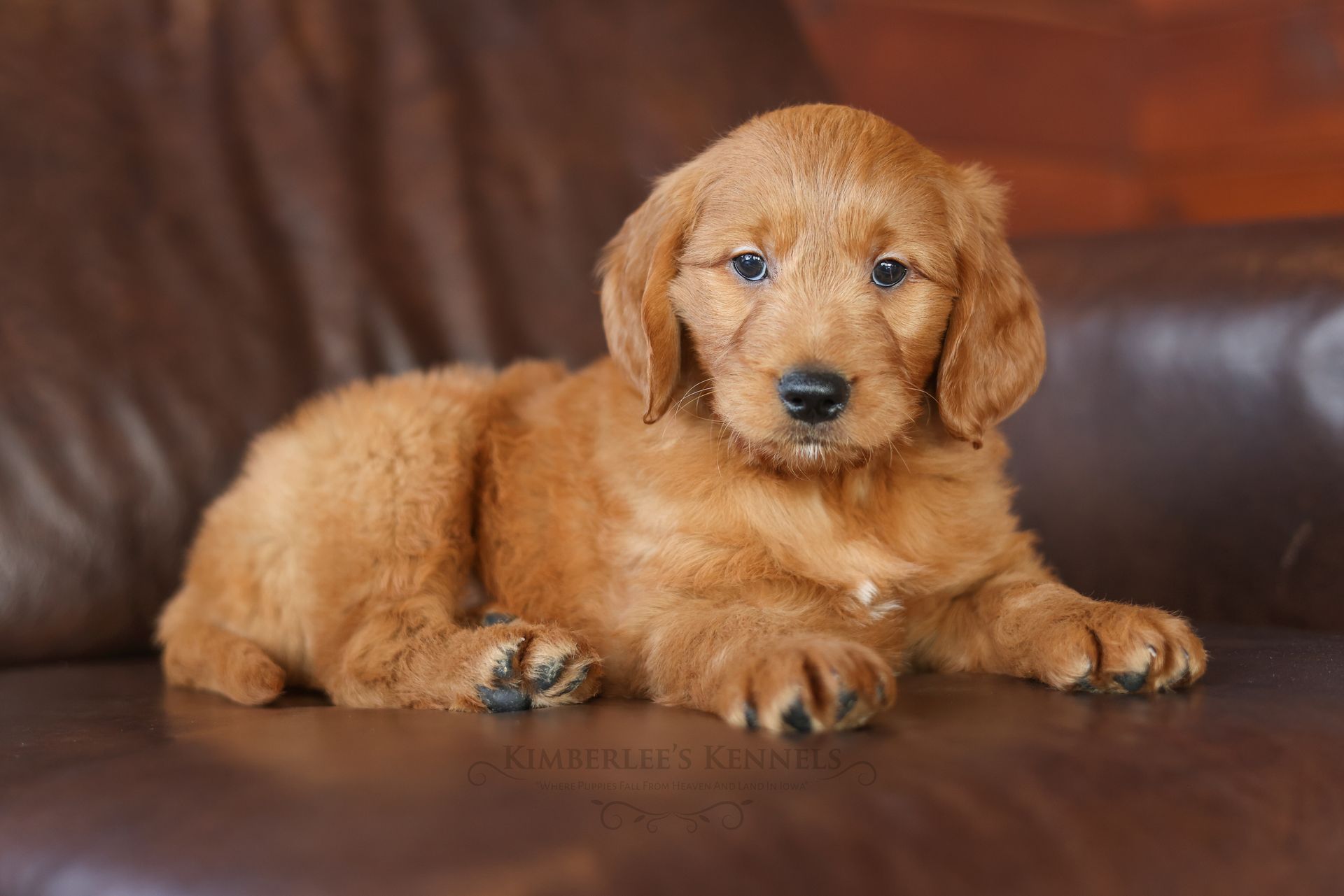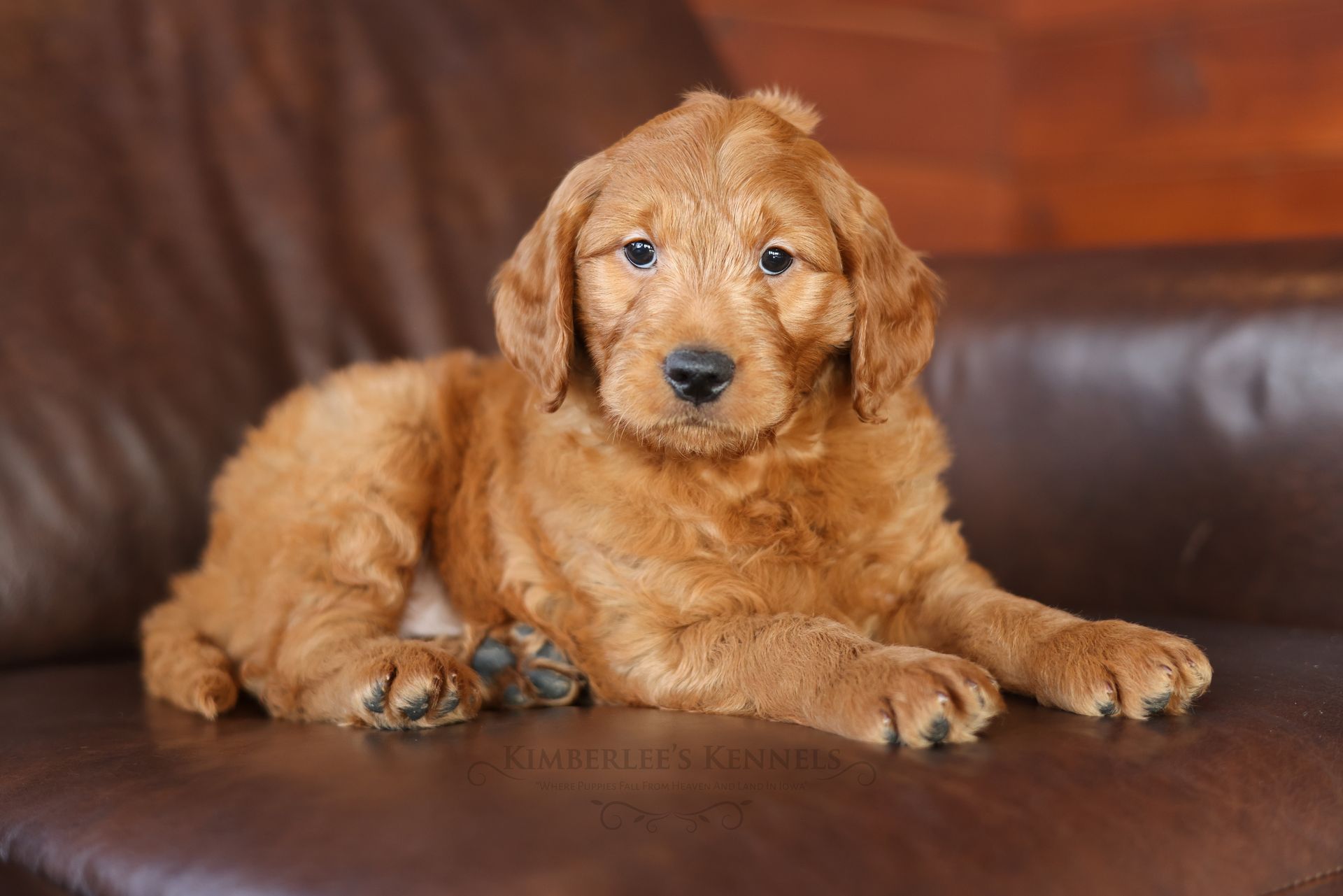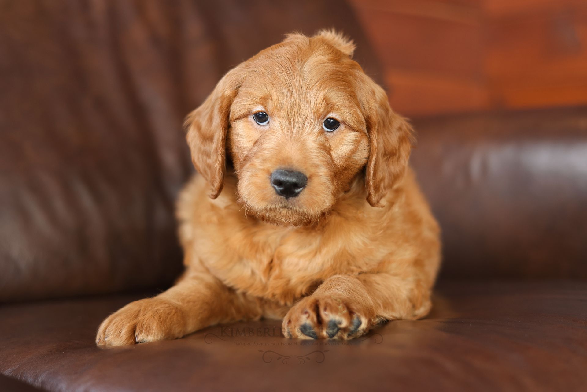 Everyone who meets Cheeto is instantly in love, he is such a joy to be around. Cheeto is an easy going and content puppy. He’s curious, positive, and confidence. He loves all types of social interactions from playing fetch, to meeting new puppies, to romping around with children. Cheeto loves receiving attention and is always ready to give lots of puppy kisses. Cheeto has a fun-spirited puppy energy to himself. However, even when he is most excited he is polite and will not be pushy or jumpy. Cheeto is enthusiastic with an excitement to learn, he already knows to sit patiently for affection. He's the smallest male and may mature around 30 pounds. His coat is shiny, healthy, and features a buttery soft wave. Cheeto's coat is a rich mahogany color and his black button nose adds nice contrast.