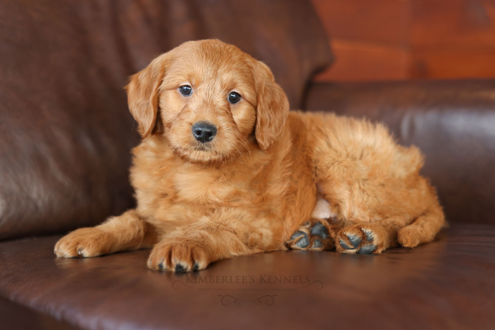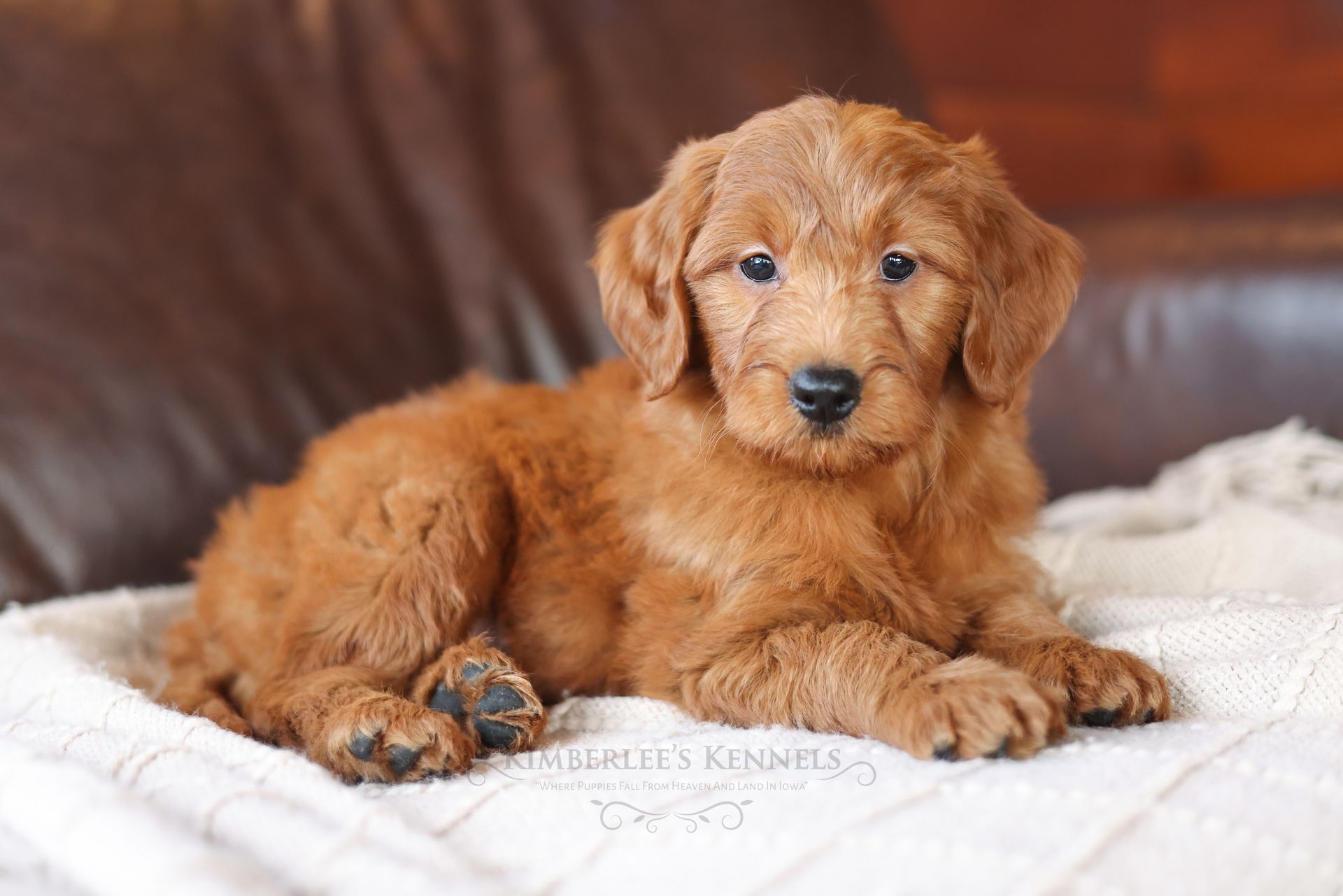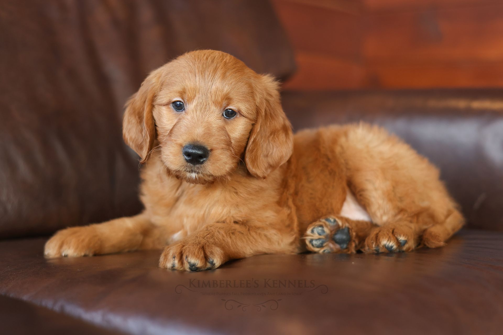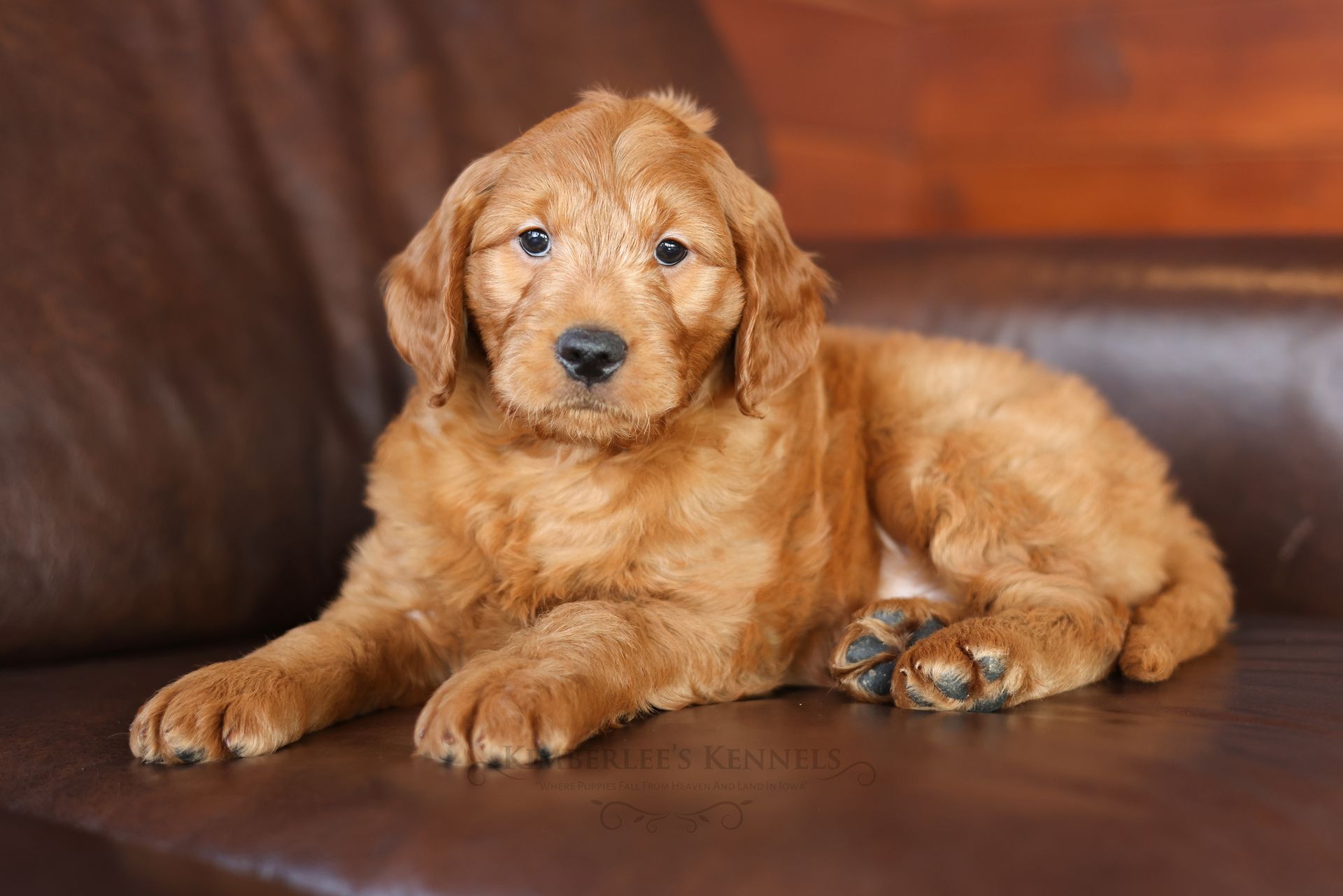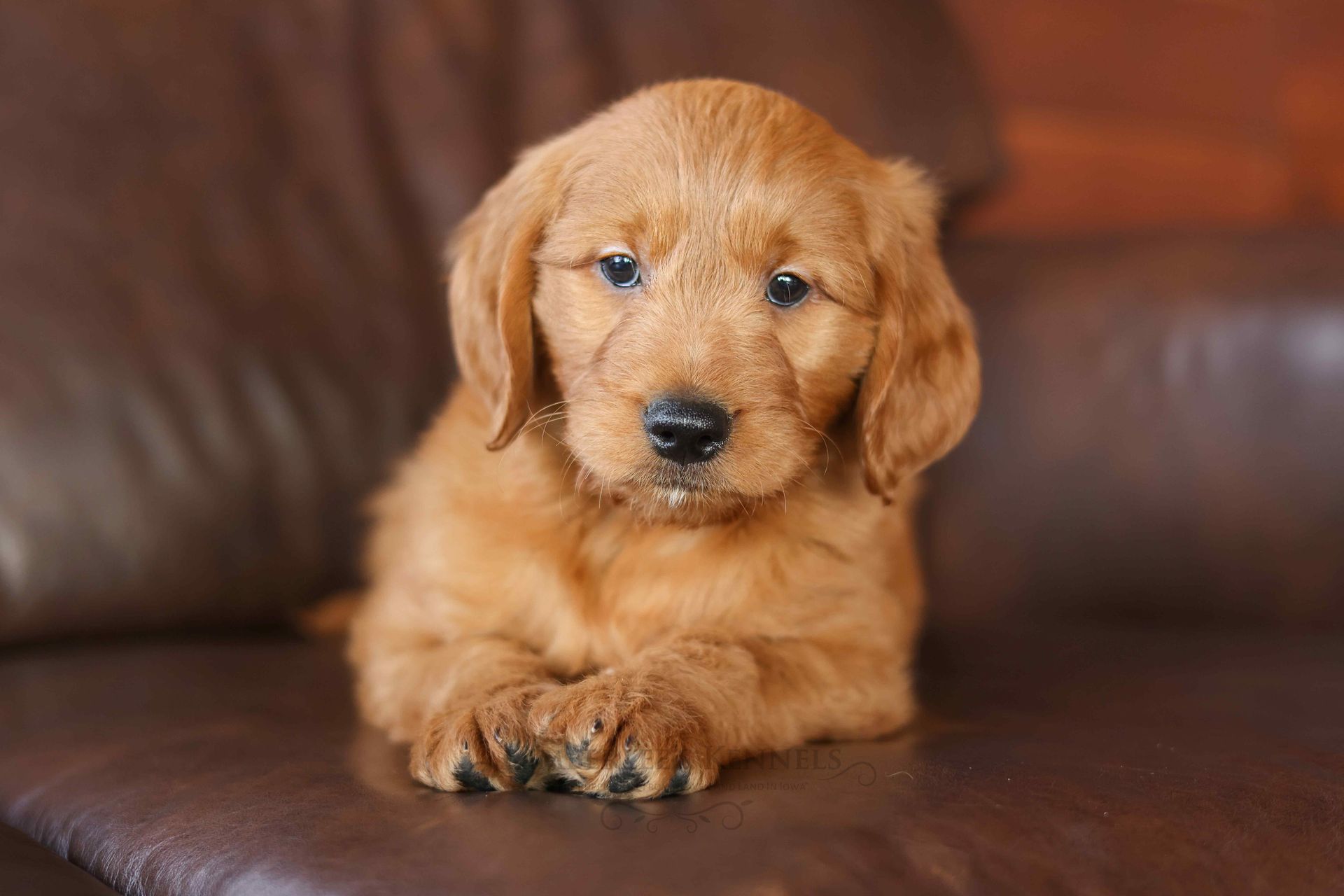 Everyone who meets Cheeto is instantly in love, he is such a joy to be around. Cheeto is an easy going and content puppy. He’s curious, positive, and confidence. He loves all types of social interactions from playing fetch, to meeting new puppies, to romping around with children. Cheeto loves receiving attention and is always ready to give lots of puppy kisses. Cheeto has a fun-spirited puppy energy to himself. However, even when he is most excited he is polite and will not be pushy or jumpy. Cheeto is enthusiastic with an excitement to learn, he already knows to sit patiently for affection. He's the smallest male and may mature around 30 pounds. His coat is shiny, healthy, and features a buttery soft wave. Cheeto's coat is a rich mahogany color and his black button nose adds nice contrast.