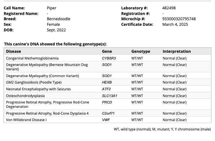 Preppy Piper can be best described as; welcoming, cheerful, and affection. Piper loves everything outdoors including splashing around in the water, romping around our farm, and playing fetch among our other dogs. She instantly bonds with everyone she meets and is people oriented. Miss Piper will happily greet everyone she meets with her fluffy tail wagging. Piper enjoys belly rubs and ear scratches the most. She has a confidence yet mellow personality and is unfazed by stress or new environments. Piper knows how to light up any room with her bubbly and goofy demeanor. She is food motivated and shows great engagement. Piper has a one-of-a-kind temperament as she is well socialized and balanced. Piper is a natural mother, she makes she her puppies are always well feed and extra clean. She shows endless love and attention to her puppies and especially loves when they are slightly older so she can start to play with them! Piper is an absolutely stunning bernedoodle! Her coat is extra shiny and healthy with a fluffy wave. She features a large white tipped tail, a thick tuxedo chest, and a round white snout. Her copper eyebrows and copper stockings add to her beautiful appearance. Piper has a taller build and is 72 pounds.
