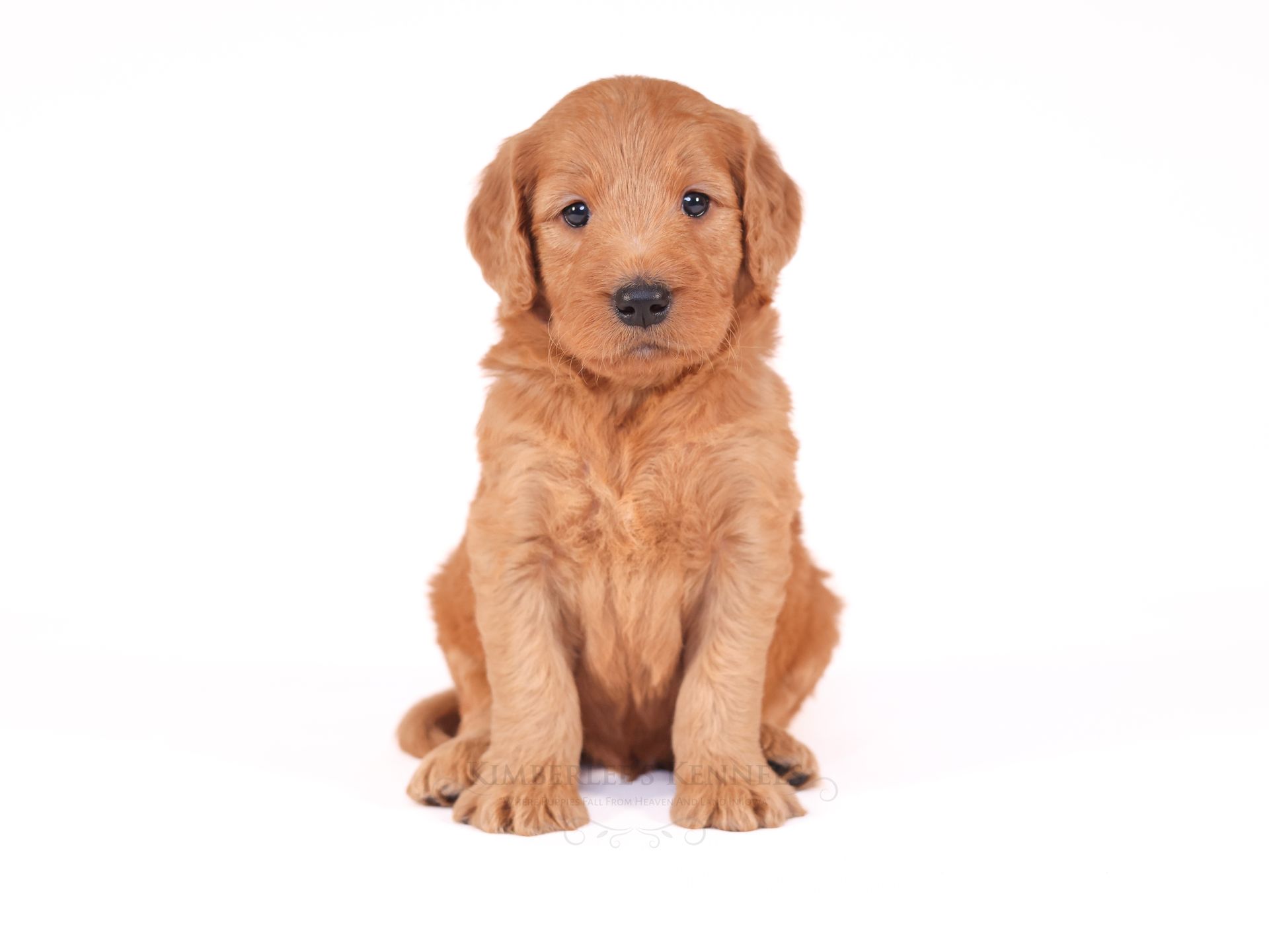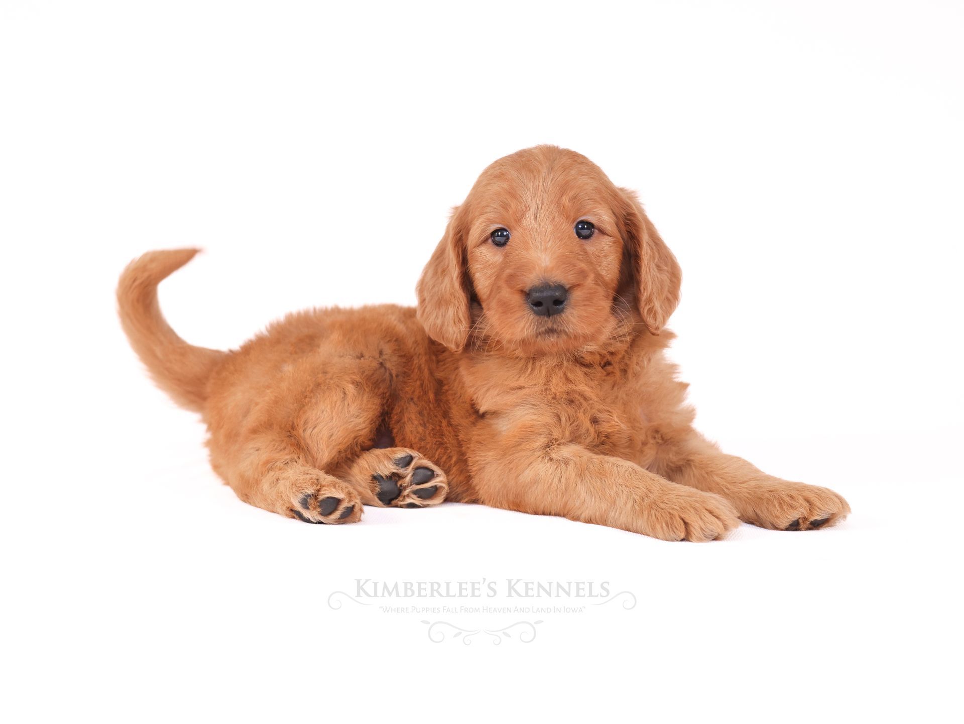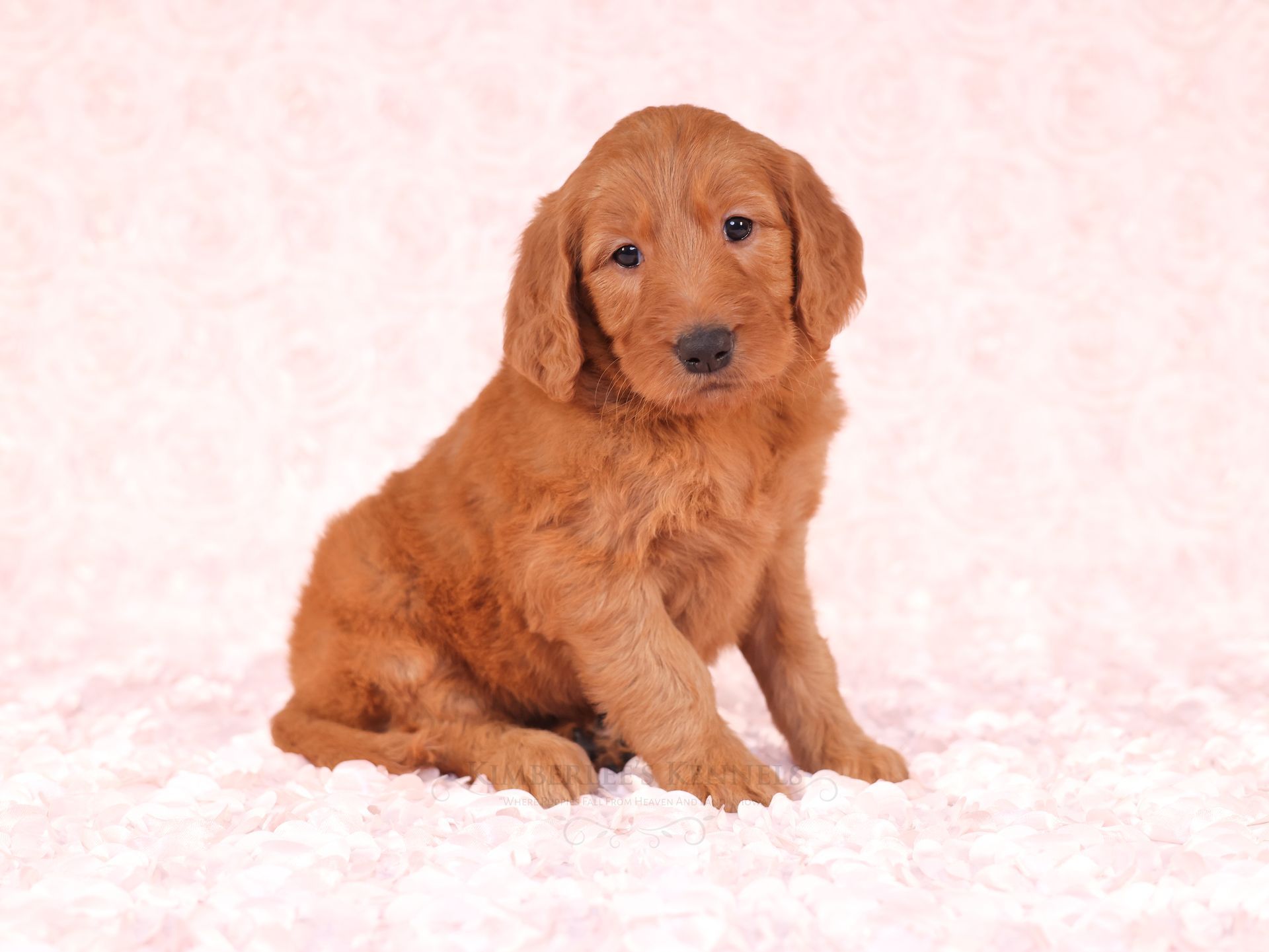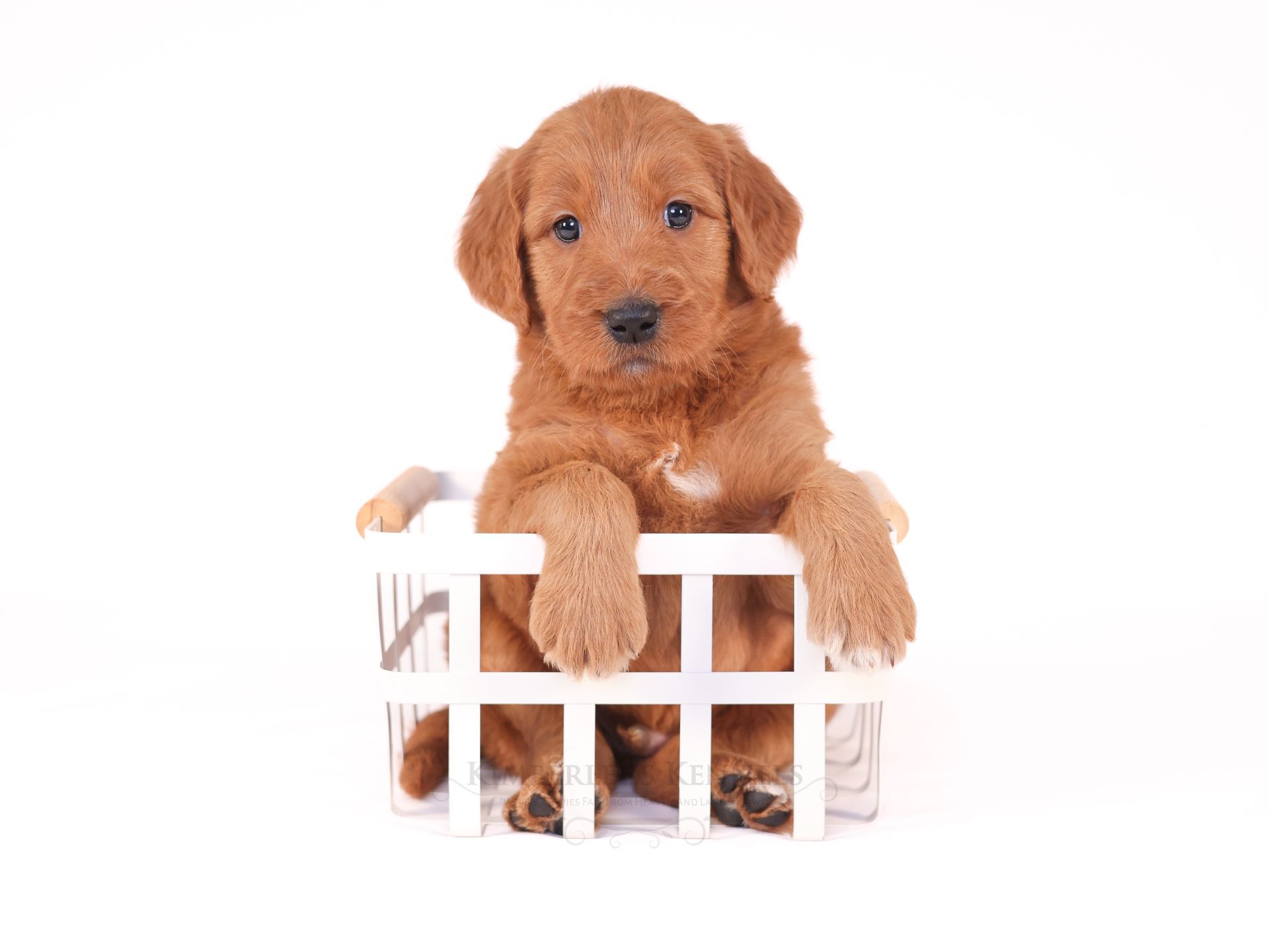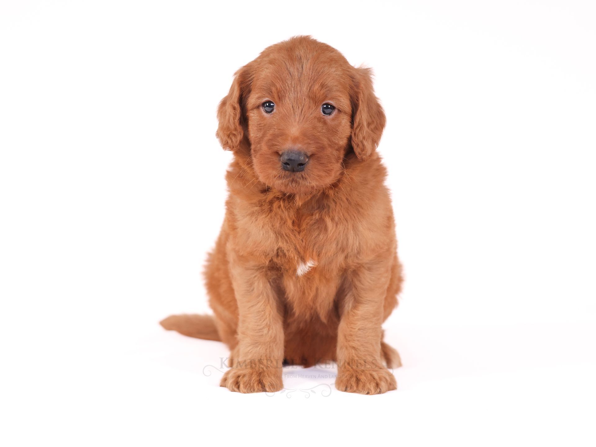 Radiant Ruby is perfect in every way! She has a square confirmation and athletic disposition. Ruby is just over 46 pounds and 24 inches to her shoulders. Her coat is a medium red to apricot color with a fleecy soft curl. Ruby was born and raised here at our kennel from our Shania and Hawk litter. Ruby is best known for her intelligence and people orientation. Ruby has always been intuitive and seems to be able to read your emotions. Ruby creates the most special bonds with people and is very attentive. Ruby's the perfect balance of independence and affectionate. She loves to go on runs and splash through our creeks. Overall Ruby holds herself with an air of elegance and has a personality like no other. Ruby welcomed her very first litter early spring of 2025 and is a natural mother- very gentle, kind, and caring towards her puppies.