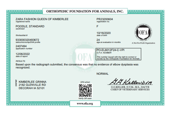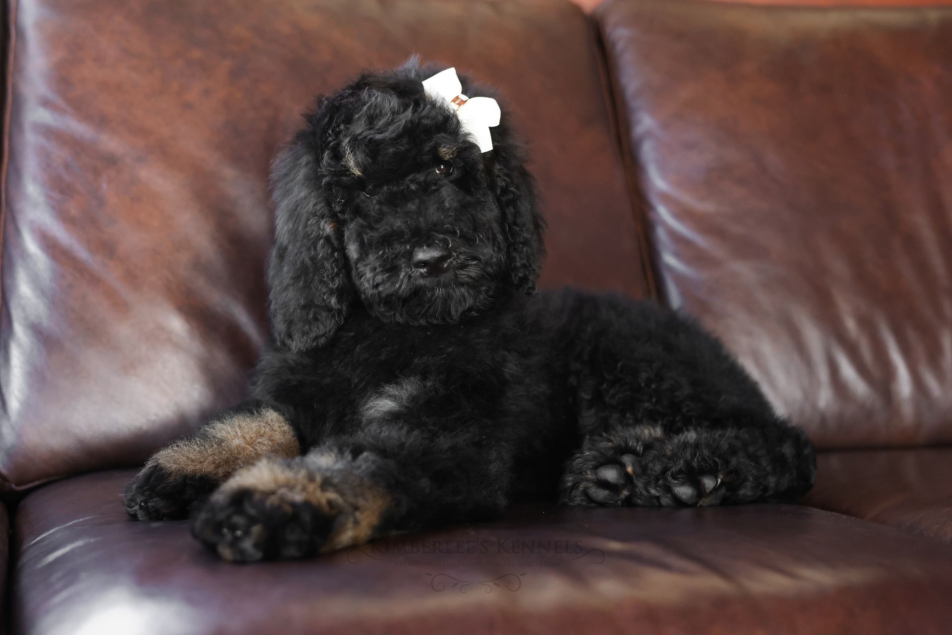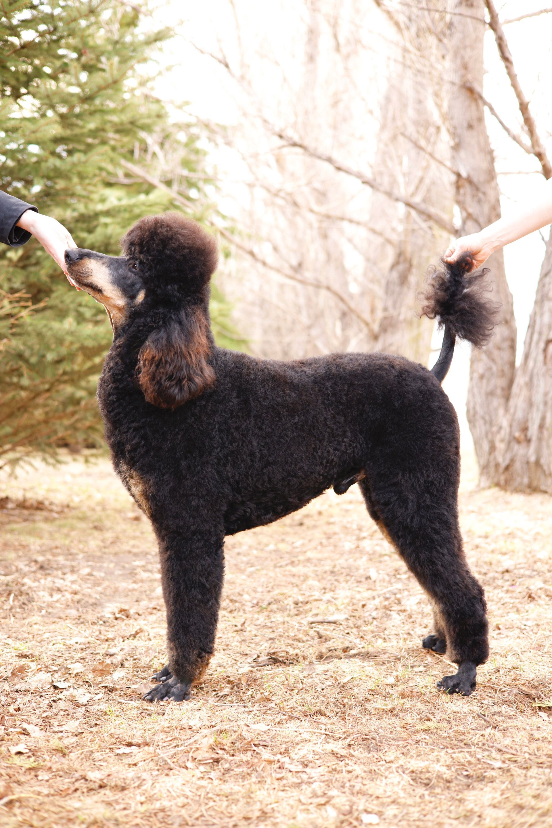 Health, Life-span, Size: The standard poodle lifespan is 13 years. A well bred poodle should have their full genetic panels done testing for common diseases. It is a given that any poodle or dog should have good, firm patellas. In general poodles are known to be a healthy and athletic breed. A well breed poodle should have a square structure and appear proud, elegant, and balanced. Top features of a poodle include; deep wide chest, tail set high and erect, almond eyes full of expression and intelligence, coat should be thick and curly. Poodles are our top recommendations for families with allergy concerns as they are hypoallergenic and completely non-shedding. Zara and Pharoah's poodles have an estimated maturity of 70+ pounds and 24+ inches to their shoulders.